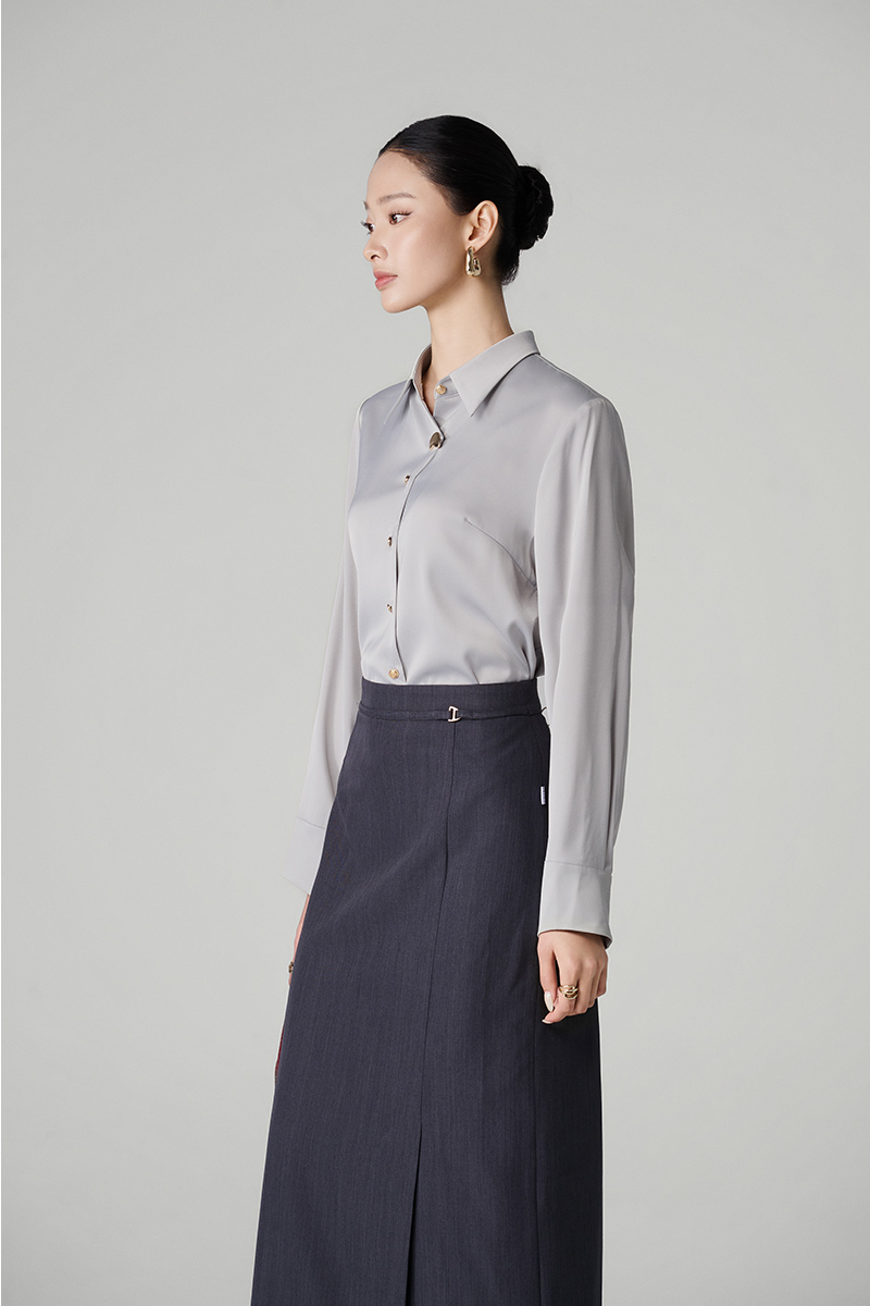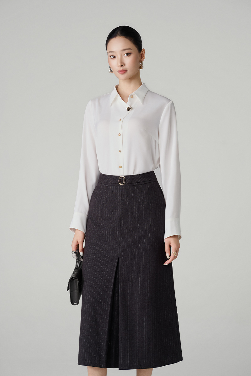 Áo kiểu peplum lệch xếp ly vai đính cúc