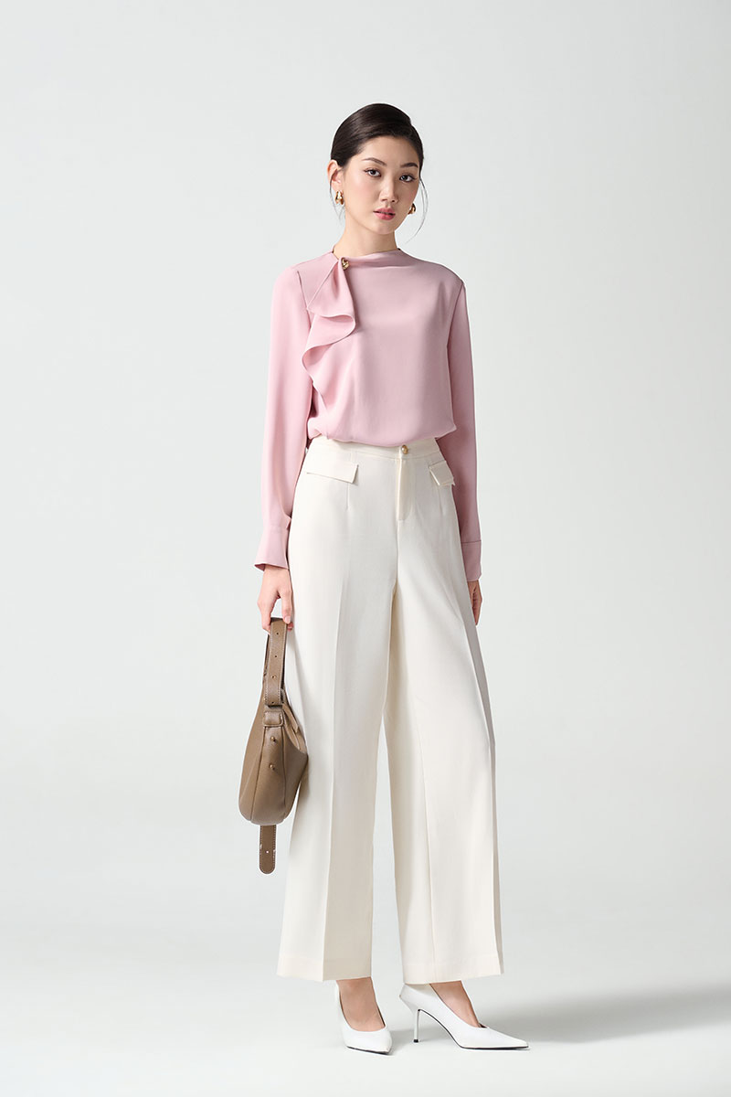Áo sơ mi nữ dáng peplum + Quần ống suông lưng cao