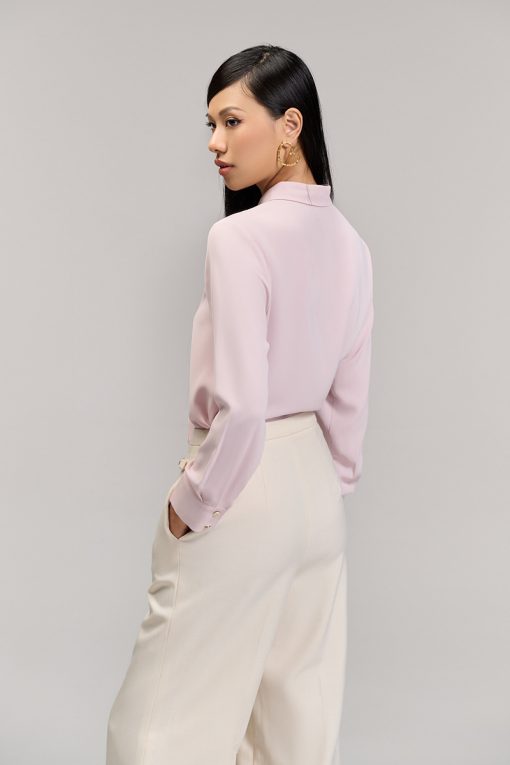 Sơ mi DT mở cúc vải, cổ buộc nơ