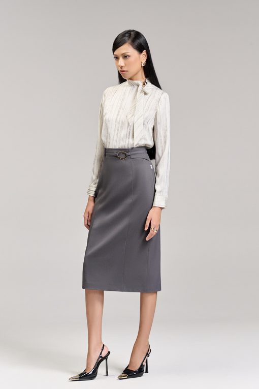 Chân váy suông kẹp đai trang trí