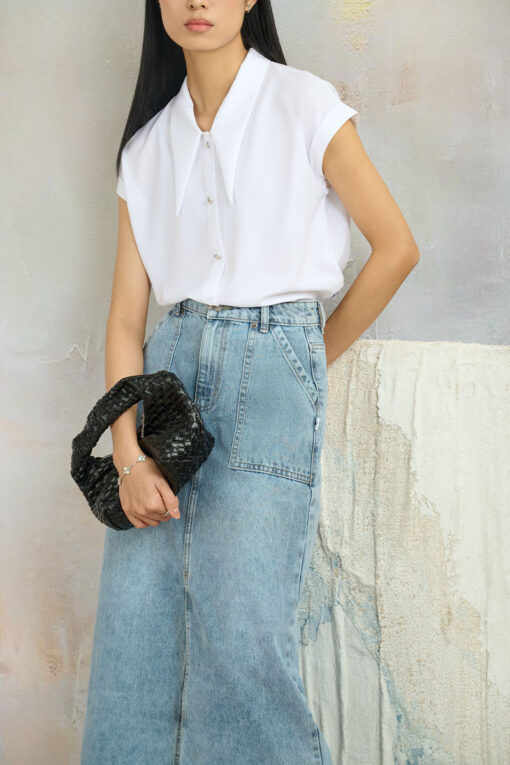 Áo sơ mi cổ đức bèo xếp ly