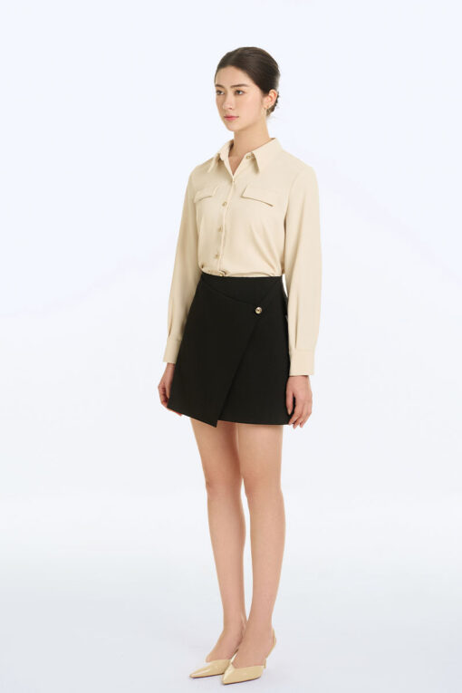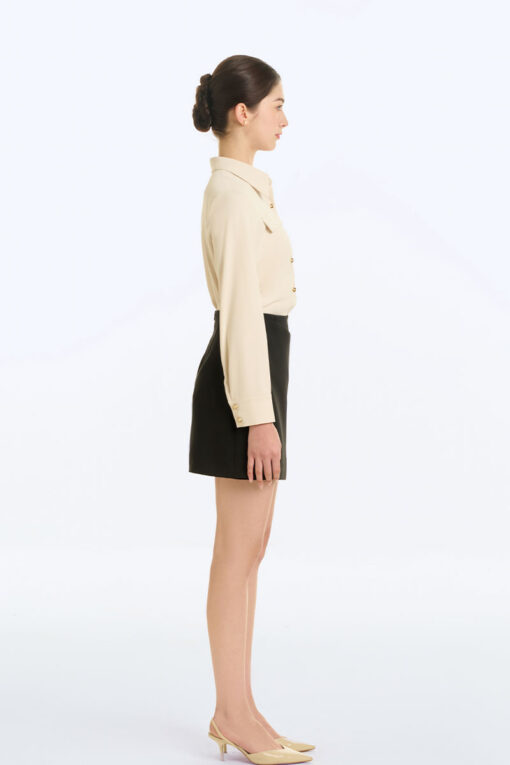 - Phối chân váy chữ A với áo sơ mi: Đây là cách phối đồ thanh lịch và trang nhã. Bạn có thể chọn áo sơ mi trơn hoặc áo sơ mi có họa tiết tùy theo sở thích. Nếu bạn chọn áo sơ mi trơn, bạn có thể phối với chân váy chữ A có màu sắc nổi bật để tạo điểm nhấn. Nếu bạn chọn áo sơ mi có họa tiết, bạn có thể phối với chân váy chữ A trơn để tạo sự hài hòa.