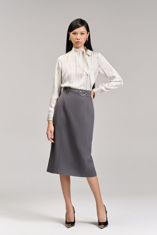 Sở hữu thiết kế ôm nhẹ phần eo, giúp tôn lên vẻ đẹp nữ tính của người mặc, chân váy suông tạo cảm giác thoải mái cho nàng nhưng vẫn giữ được nét thanh lịch.