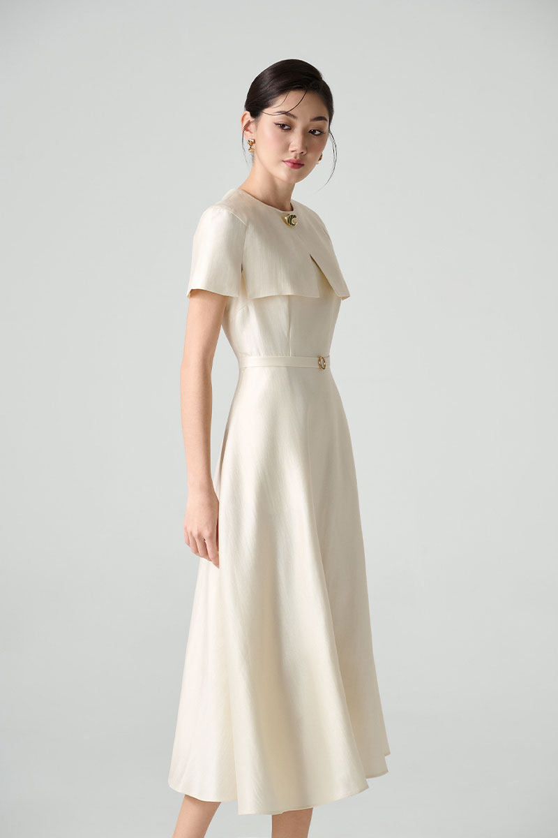 Đầm xoè tay cape can diễu thân kèm dây