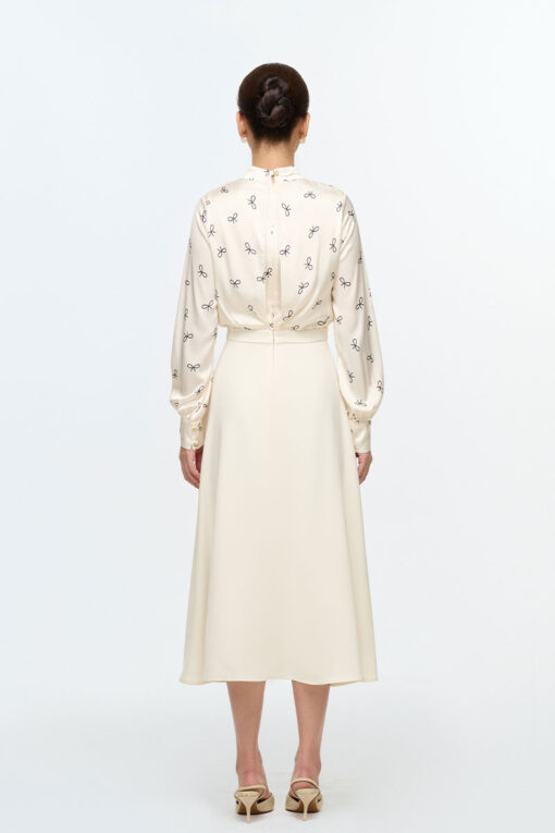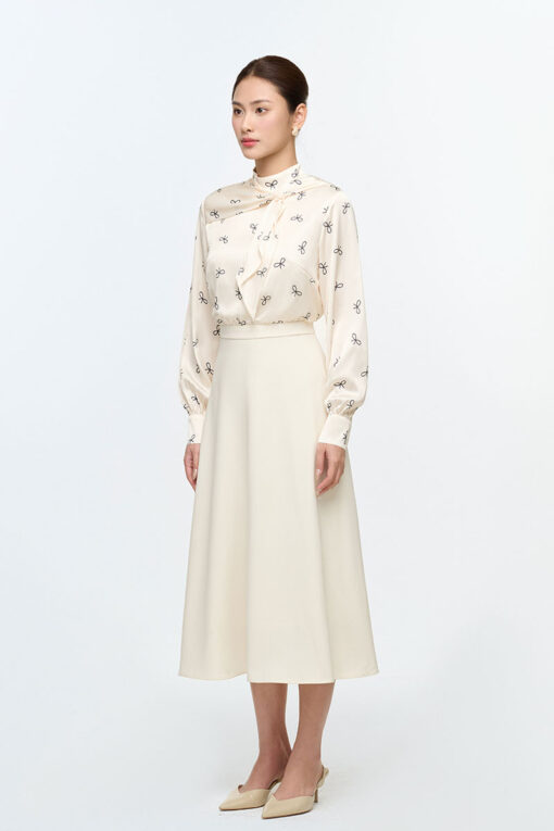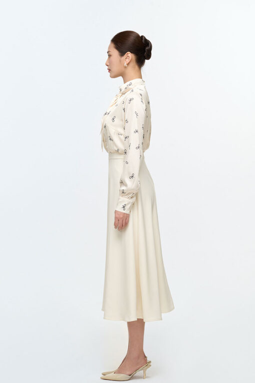 Đầm A phối tơ nơ buộc sau cổ