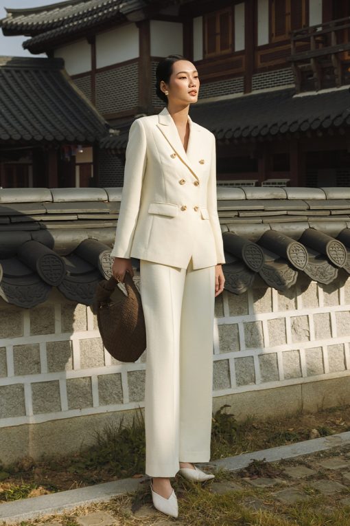 Quần ống suông dáng lửng + Áo blazer không tay