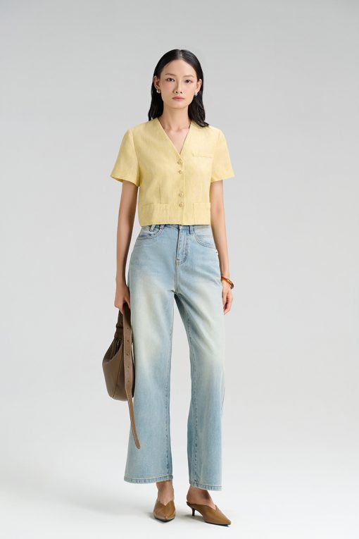 Sơ mi DT cổ luồn nơ đính cúc trang trí