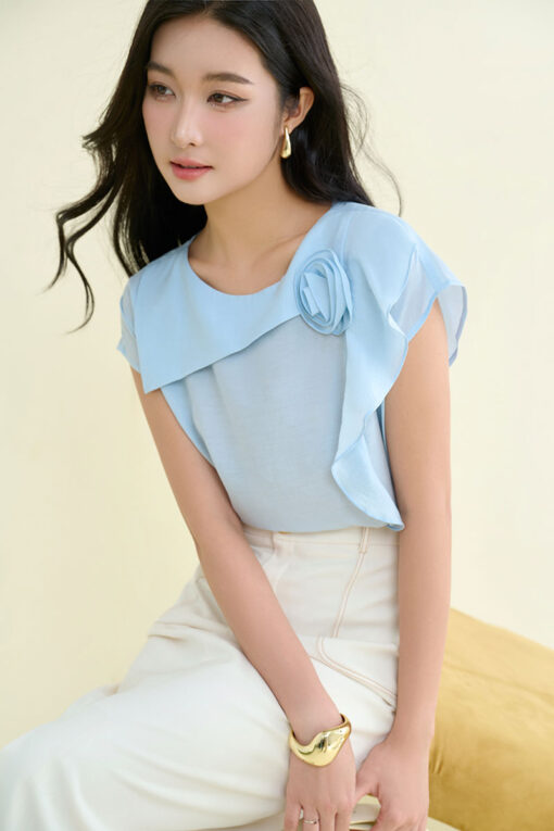 Sơ mi CT cổ thuyền bong lệch đính hoa