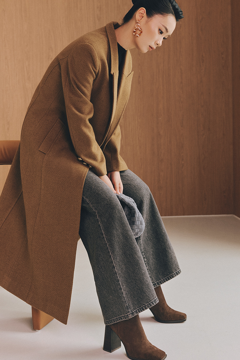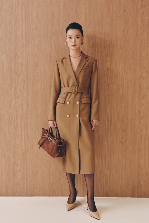 Áo khoác dạ dáng dài nẹp 1 hàng cúc