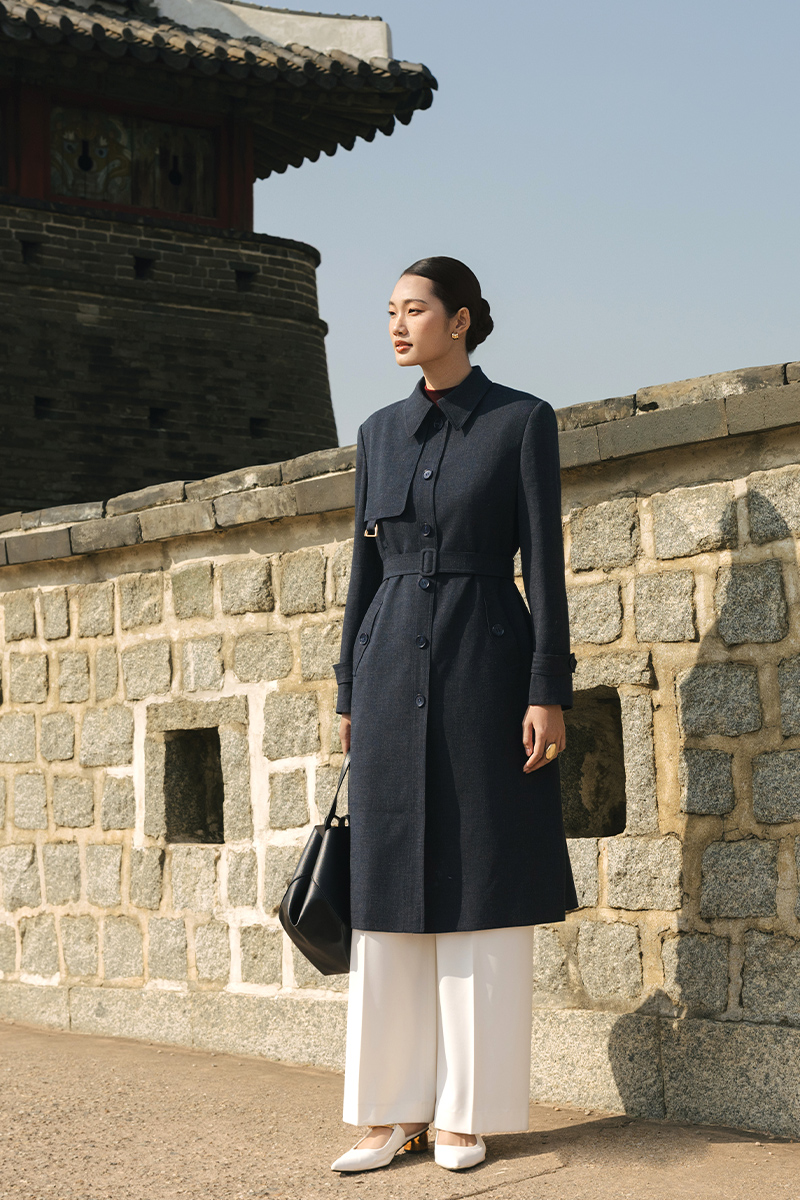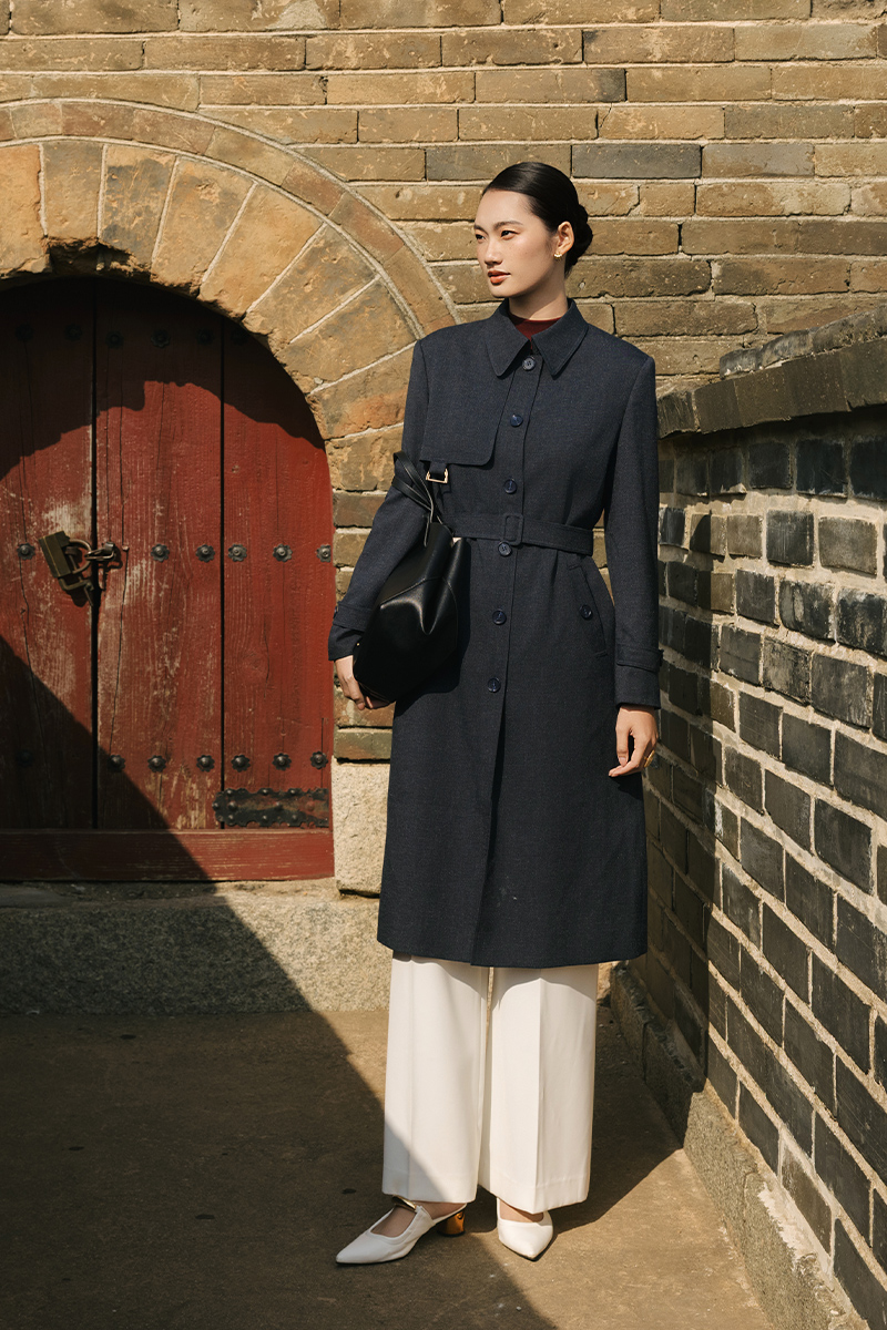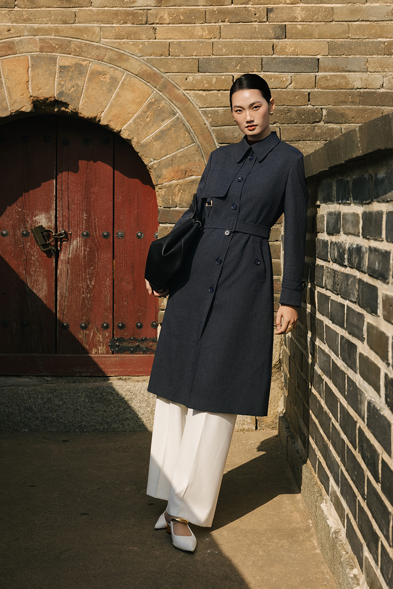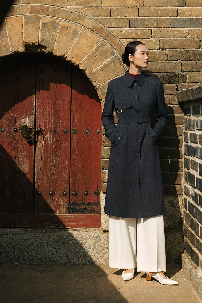 Áo khoác dài 1 hàng khuy bong ngực kèm đai