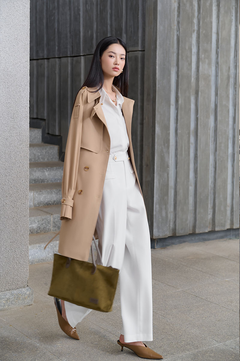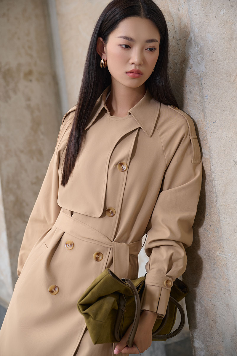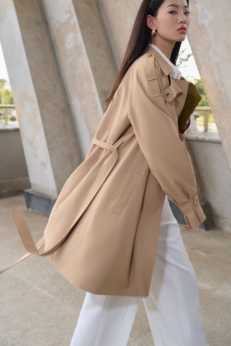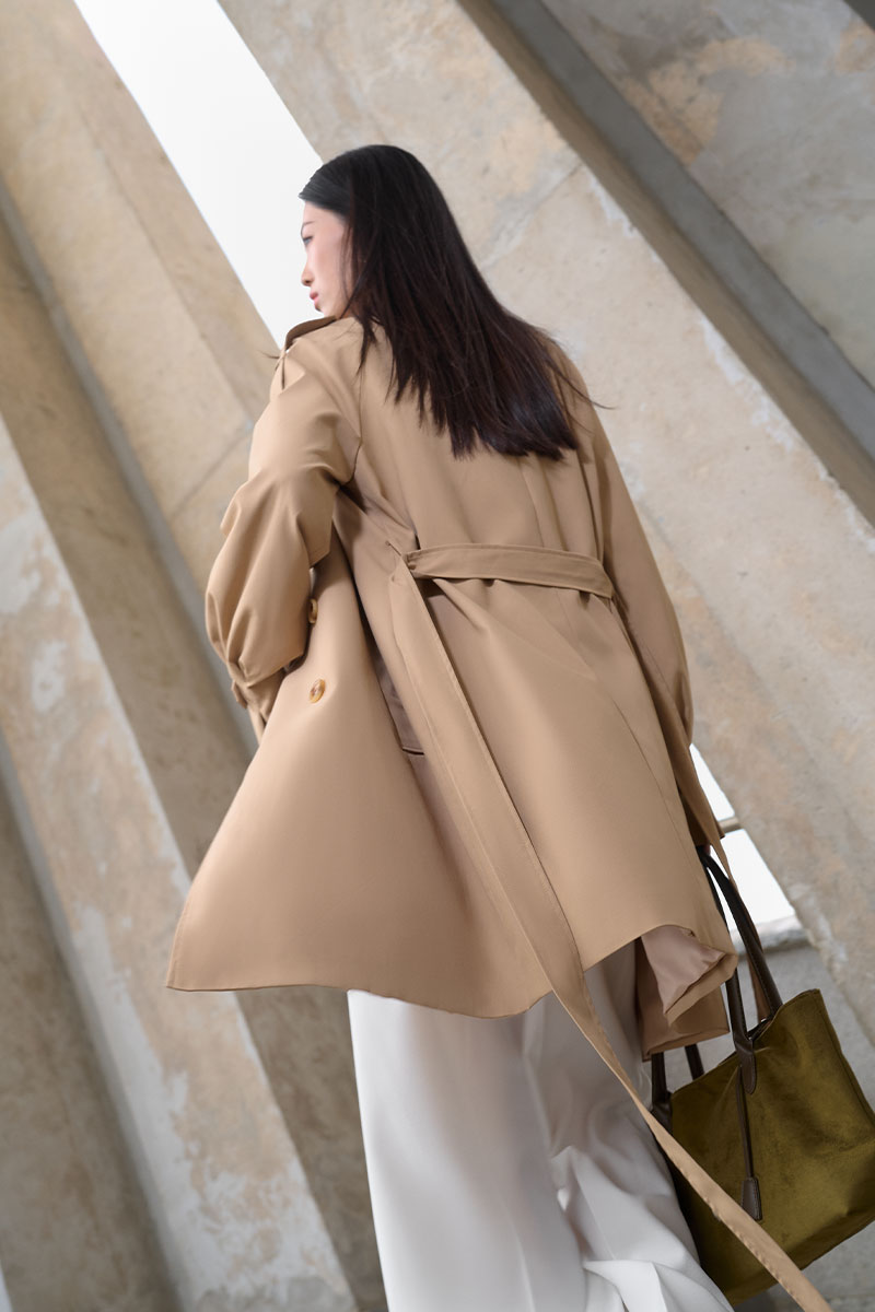 Áo khoác kaki dáng lửng tay raclang eo buộc đai