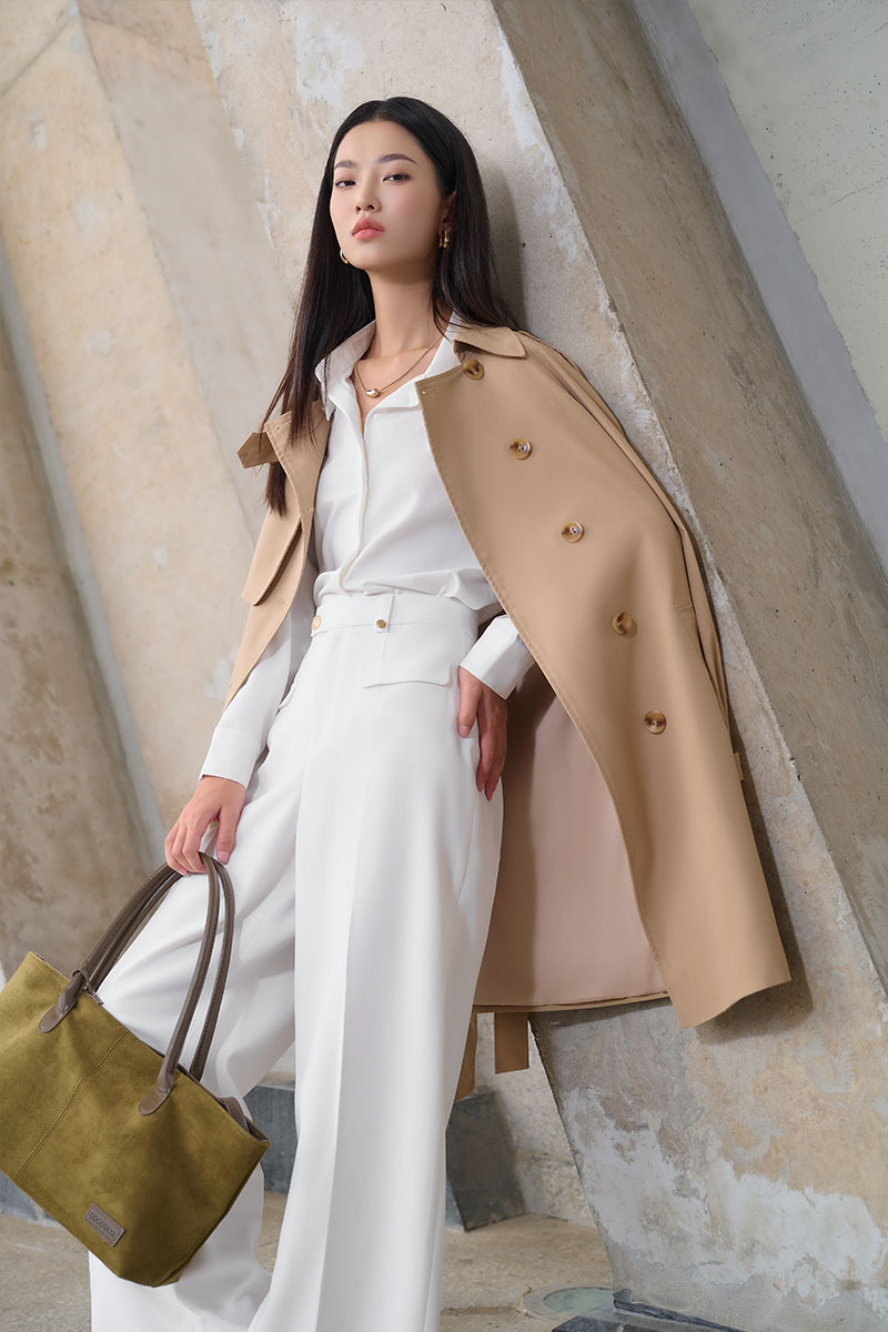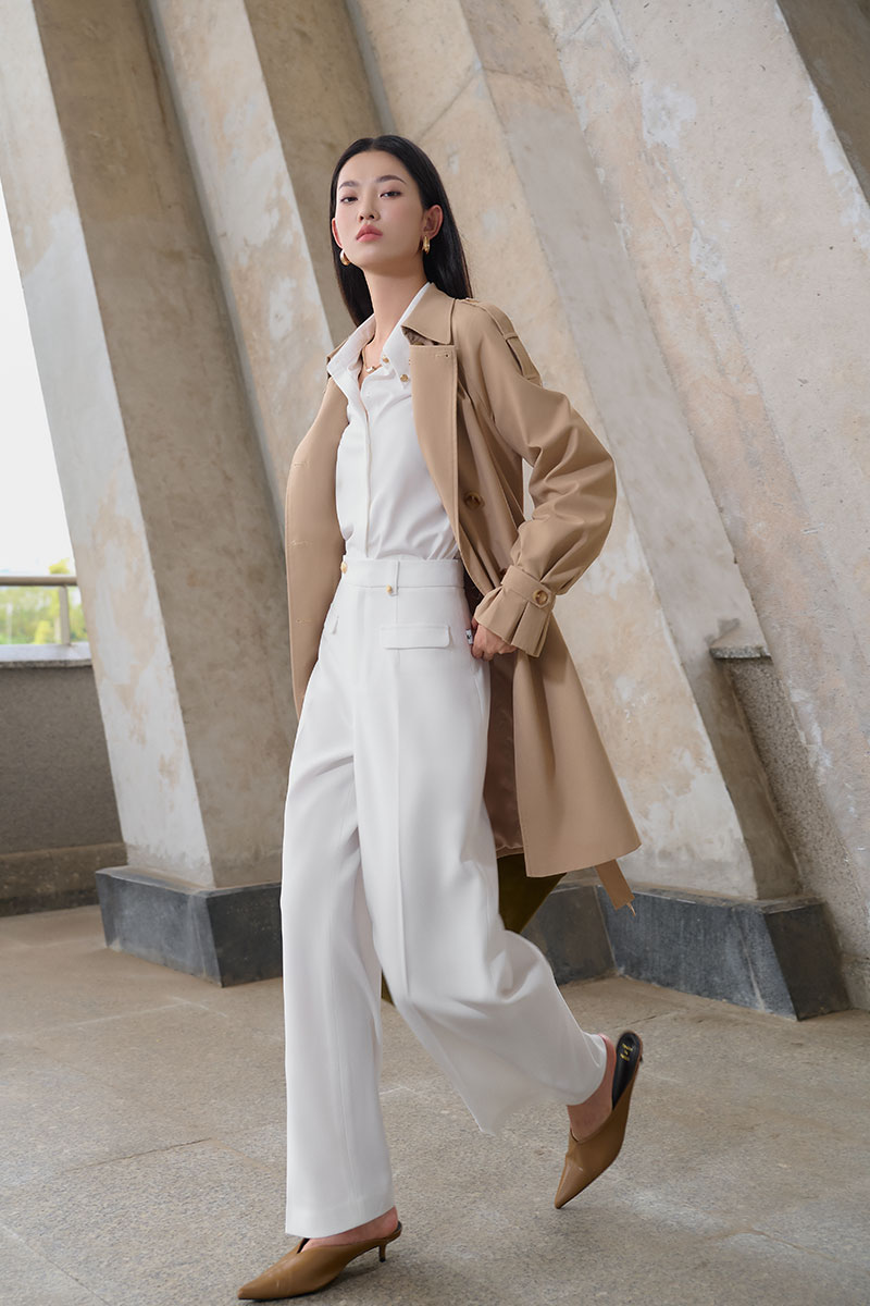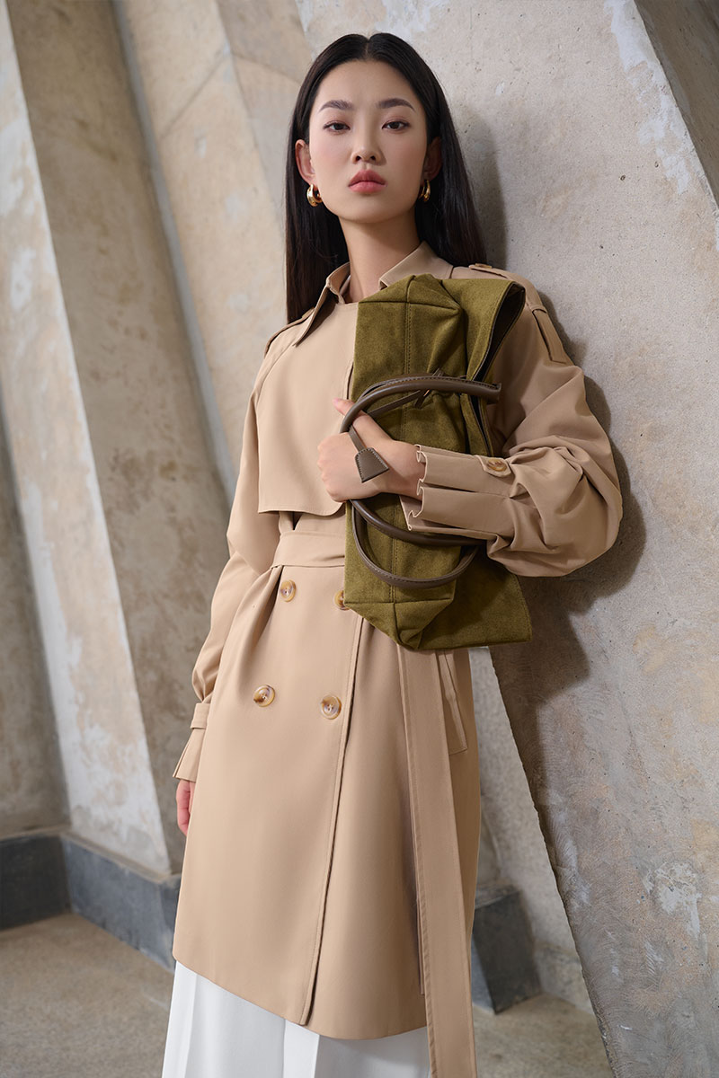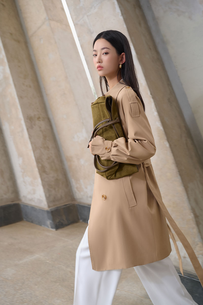 Áo khoác kaki dáng lửng tay raclang eo buộc đai