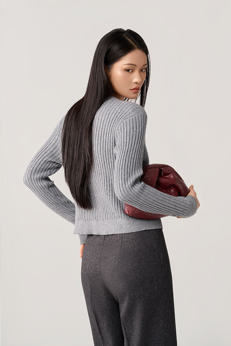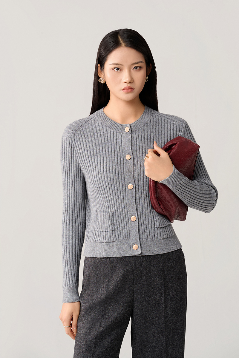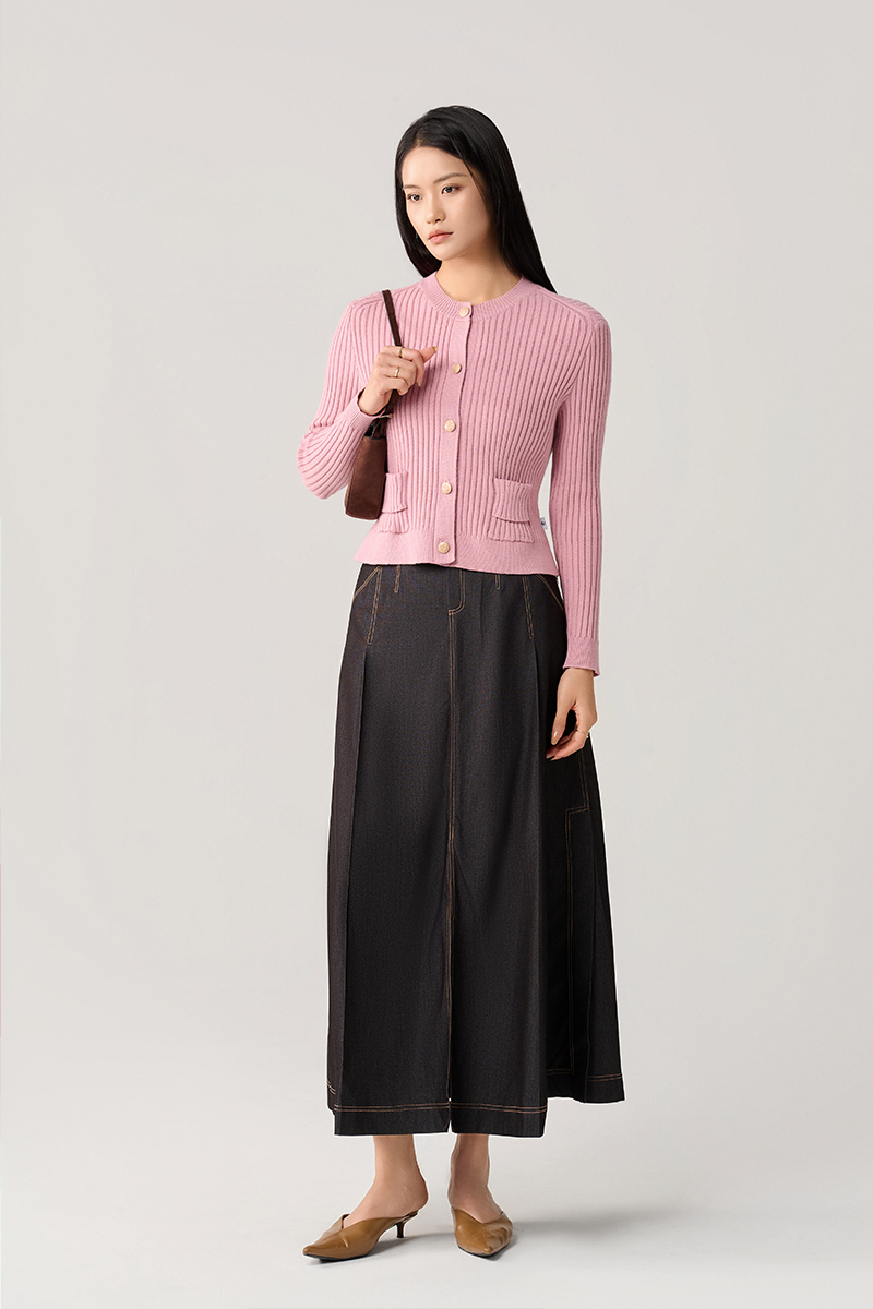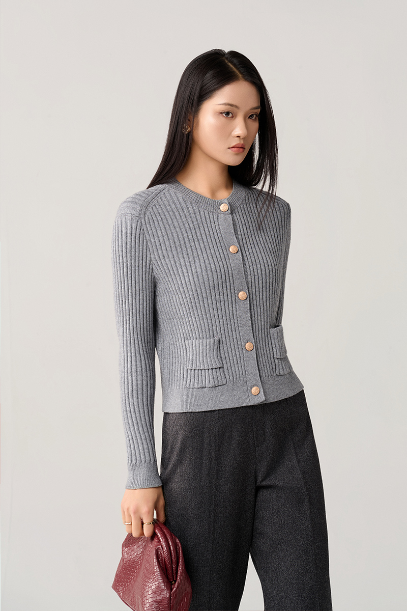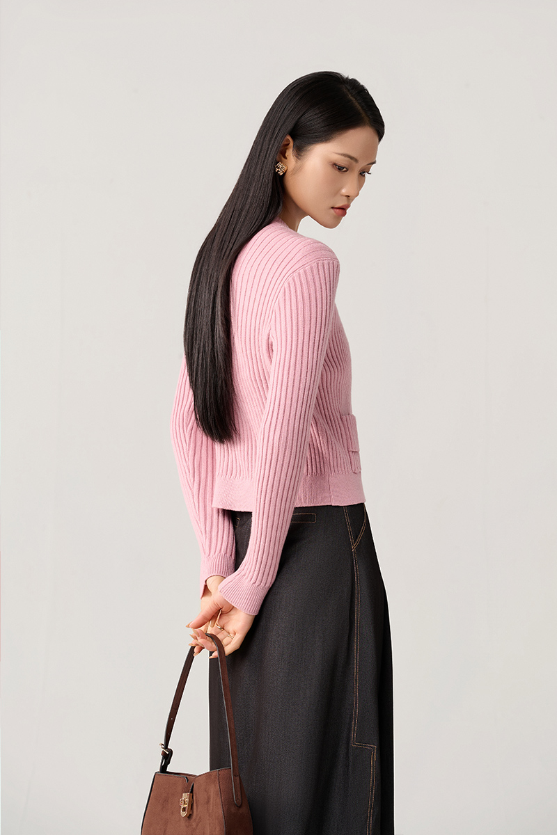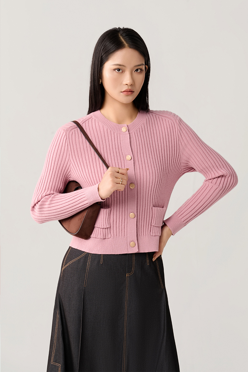 Áo khoác len cổ tròn túi ốp cách điệu