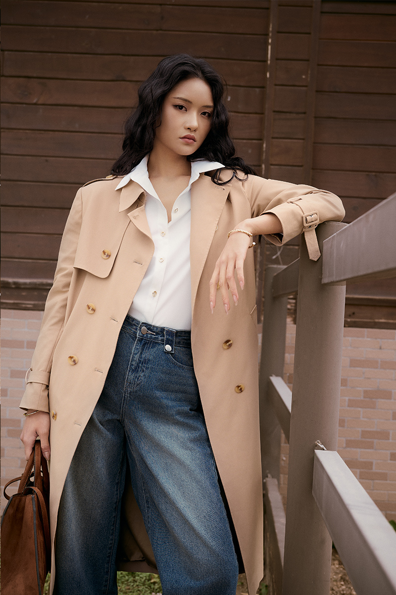 Áo khoác măng tô kaki bong ngực 1 bên