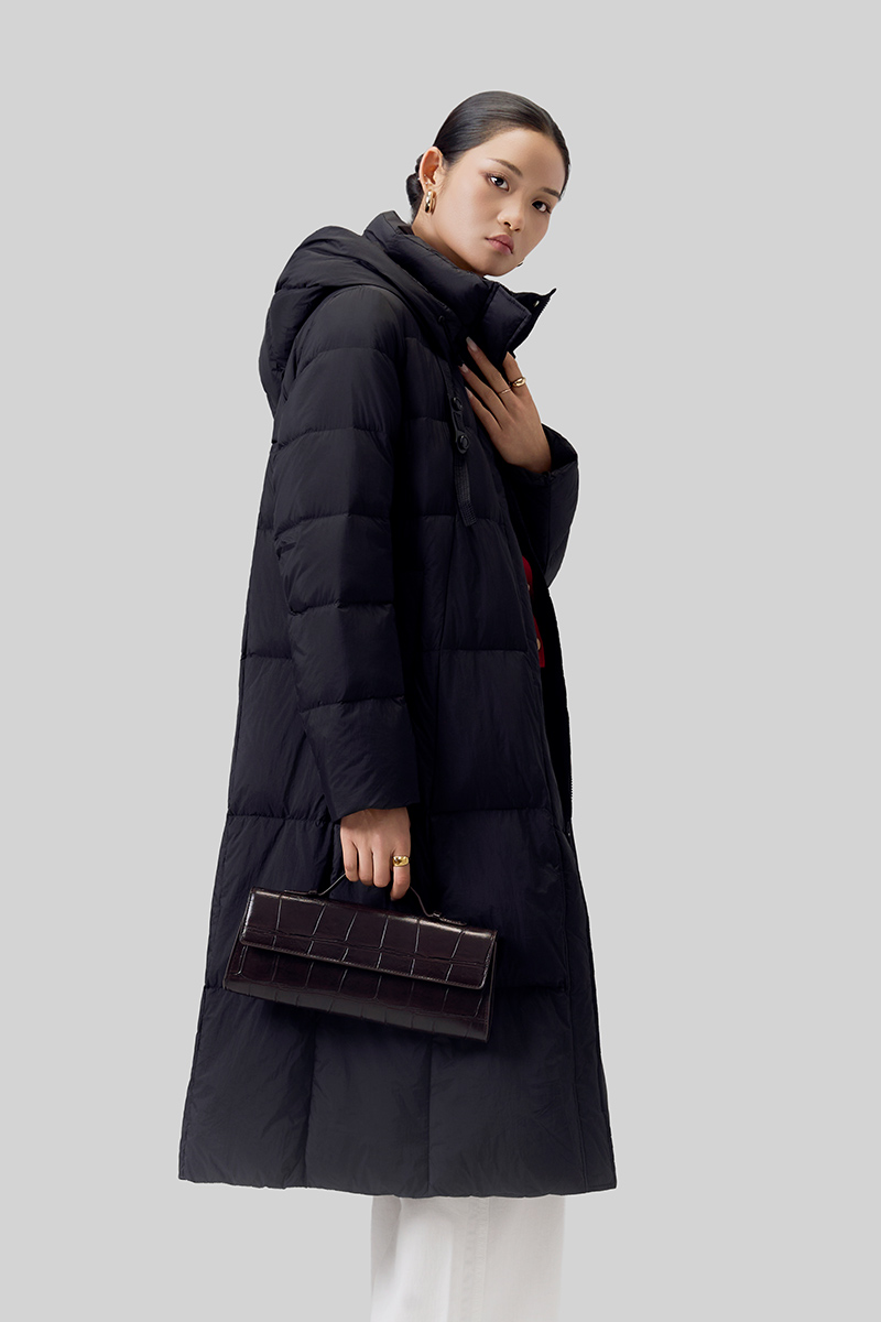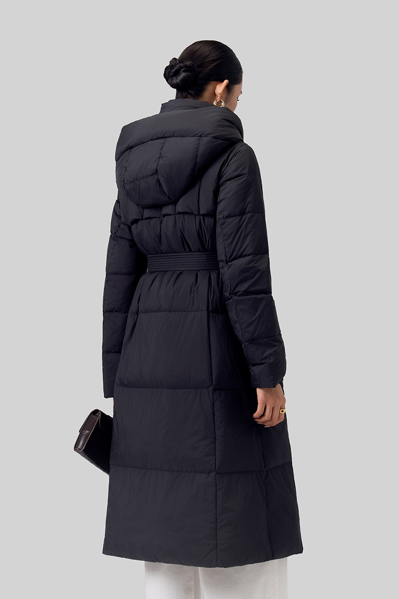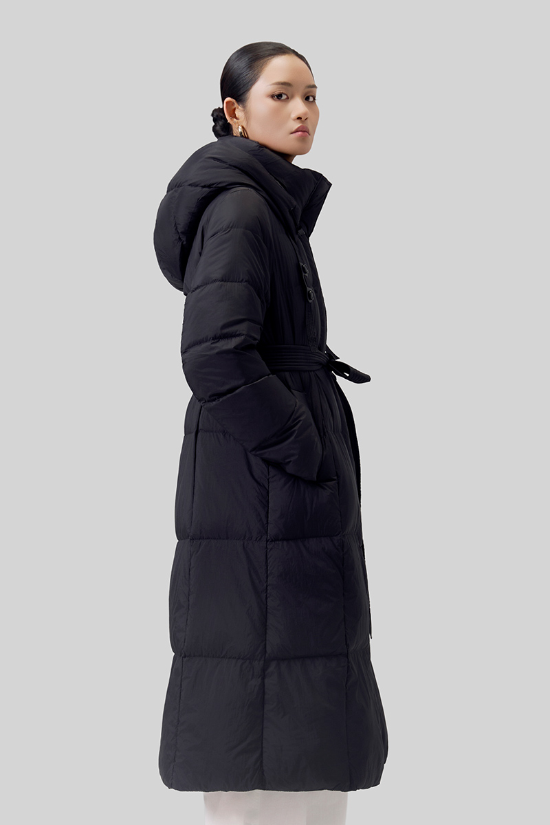 Áo khoác phao dáng dài dây kẹp cổ kèm đai eo