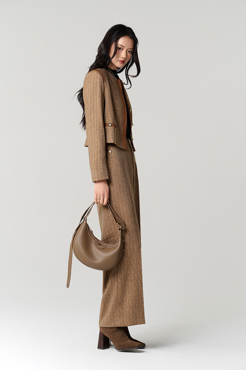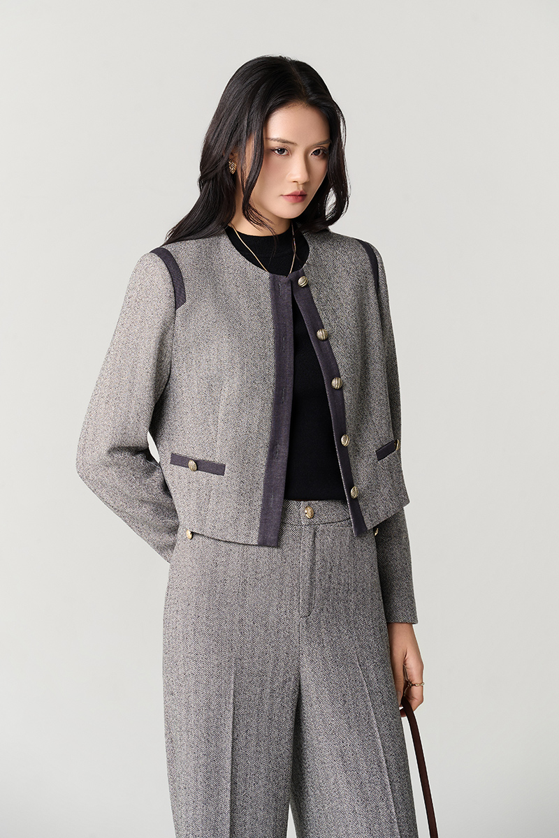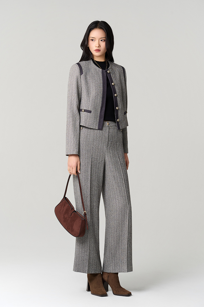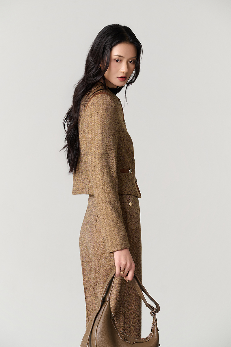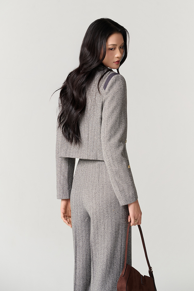 Áo khoác tweed croptop phối nẹp cơi giả