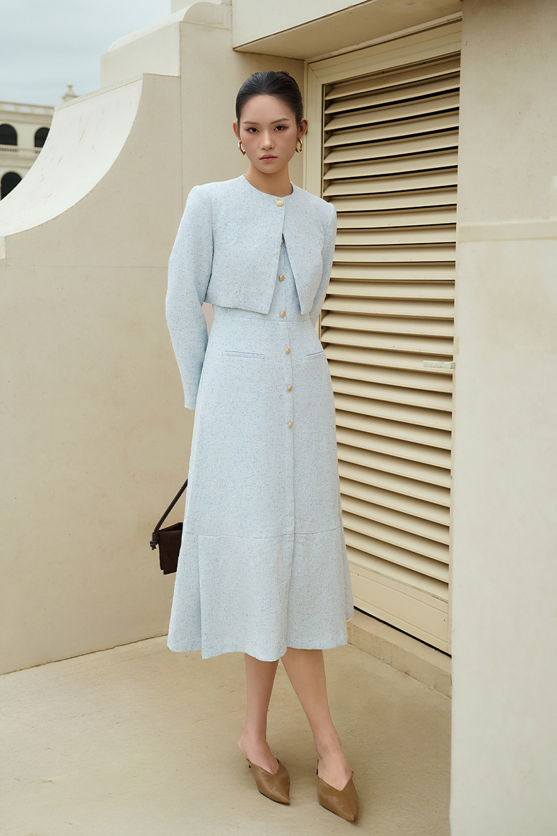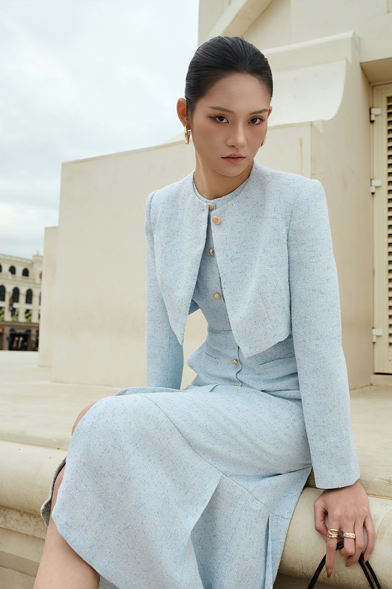 Áo khoác tweed lửng cổ cài cúc