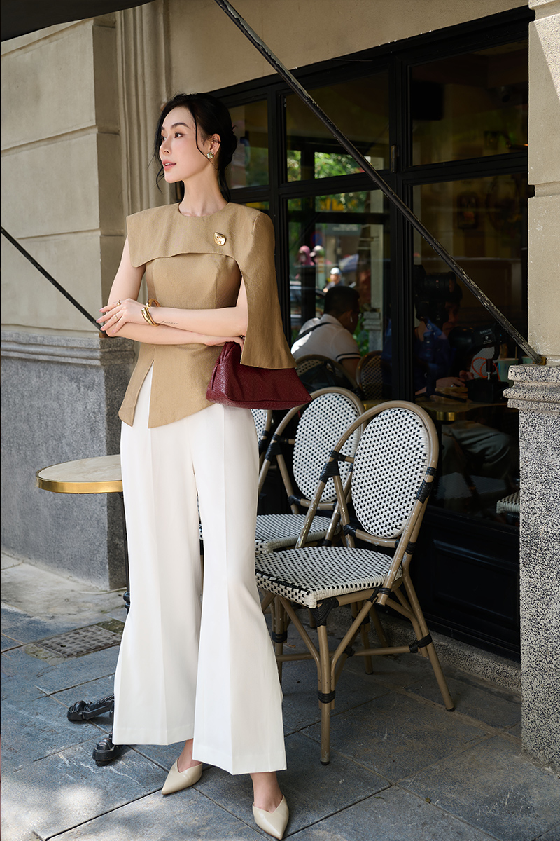 Áo kiểu cộc tay dáng peplum vai rơi lệch