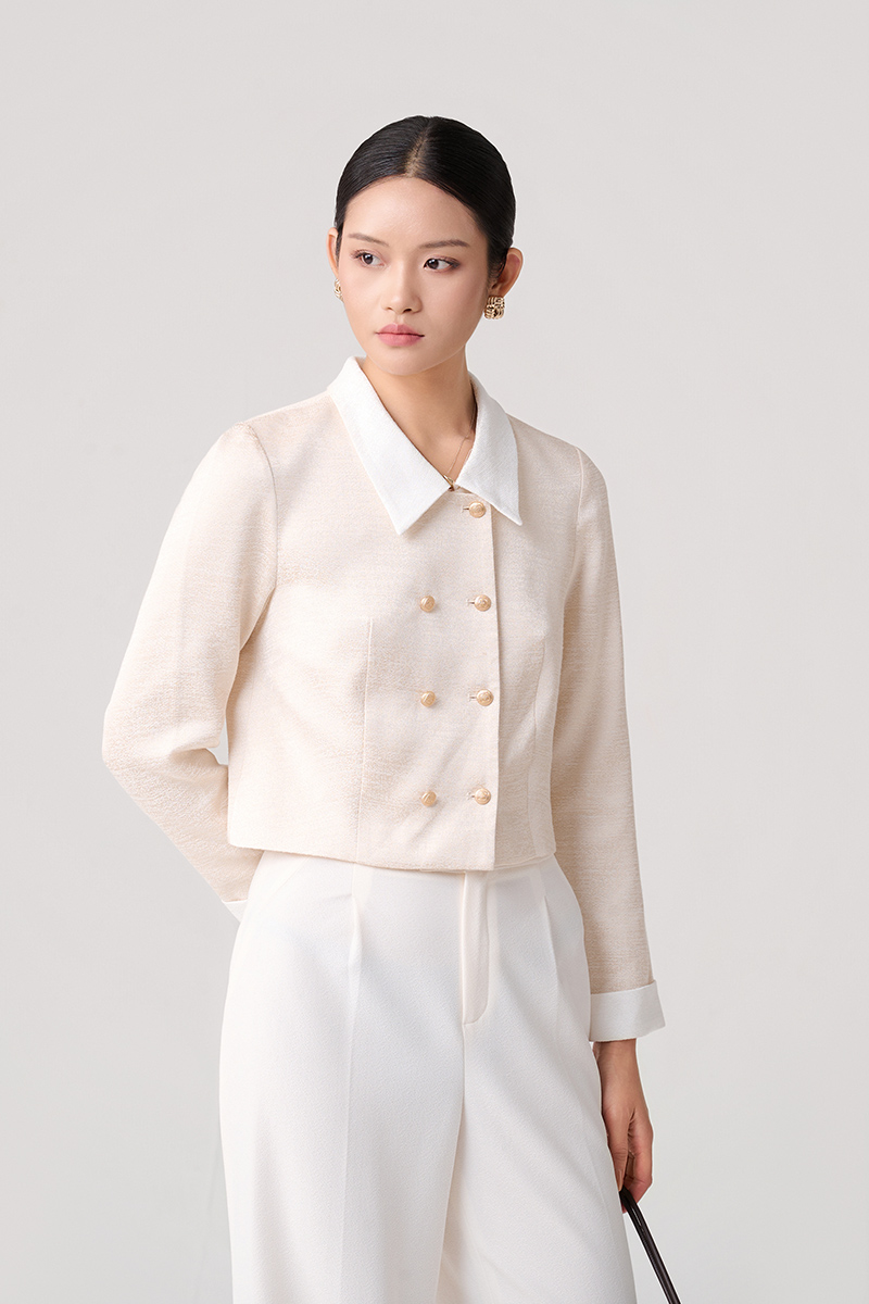 Áo kiểu croptop 2 hàng cúc phối cổ