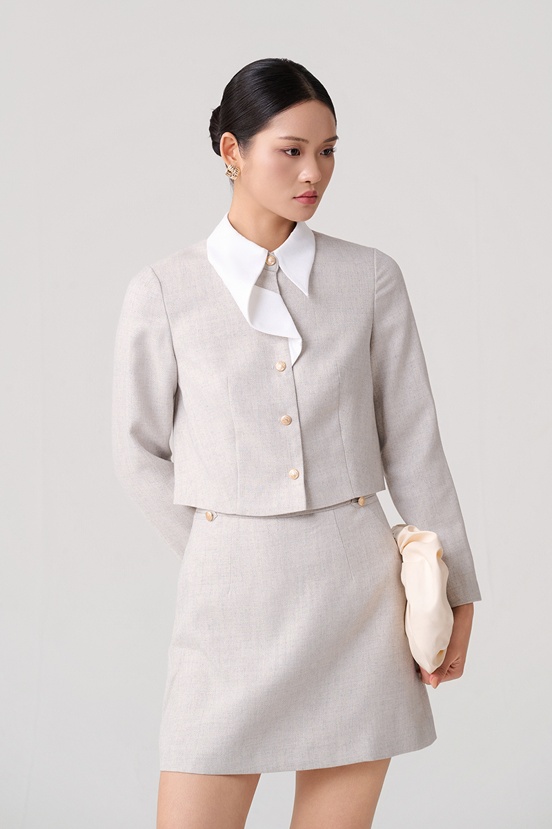 Áo kiểu DT croptop, lá cổ kẹp nẹp