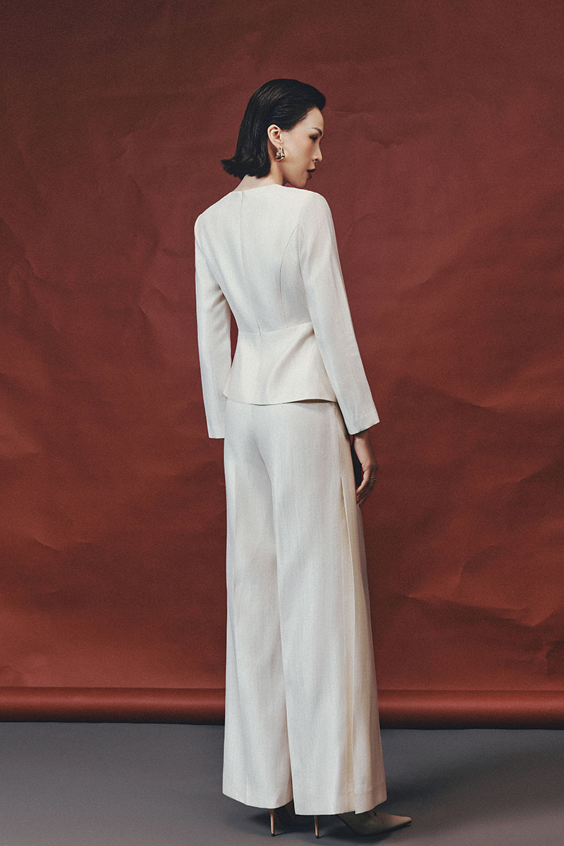 Áo kiểu peplum lệch cổ V xếp ly eo