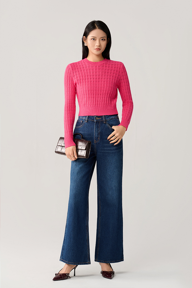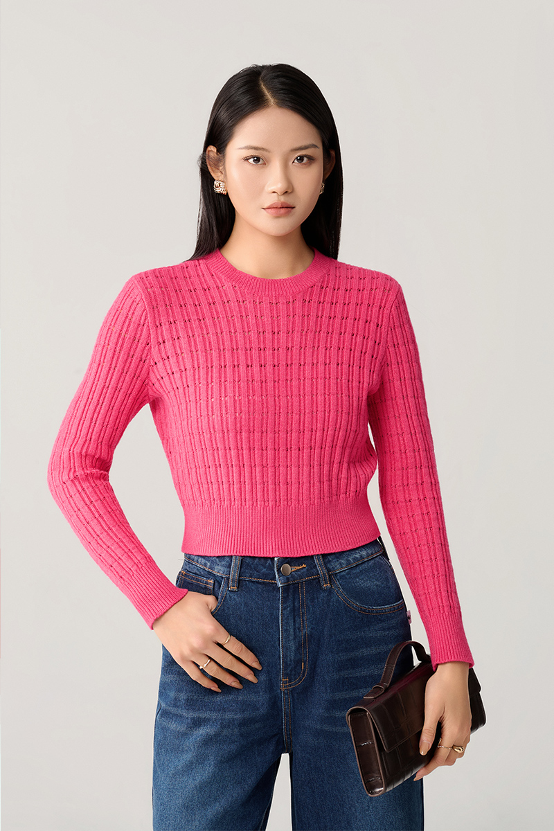Áo Len DT cổ tròn dệt sọc chấm lỗ