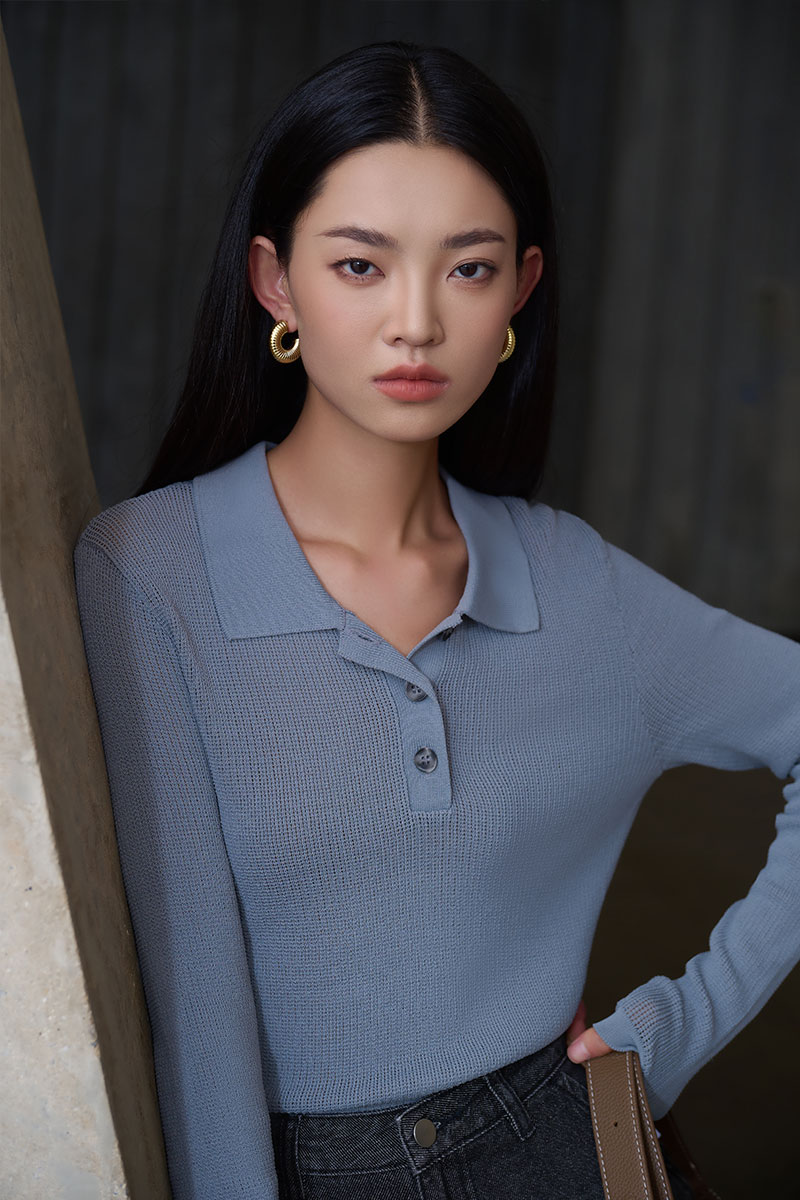 Áo len DT dệt lỗ cổ bẻ trụ 3 cúc