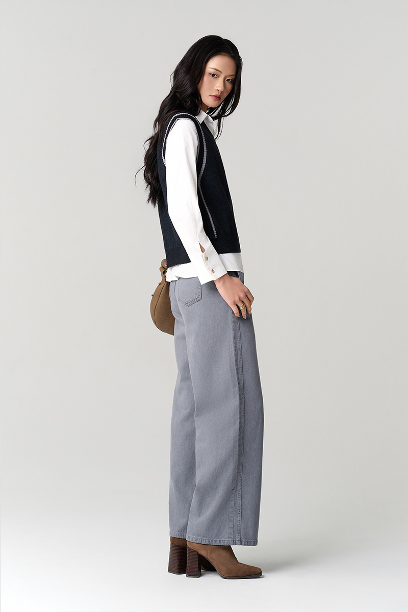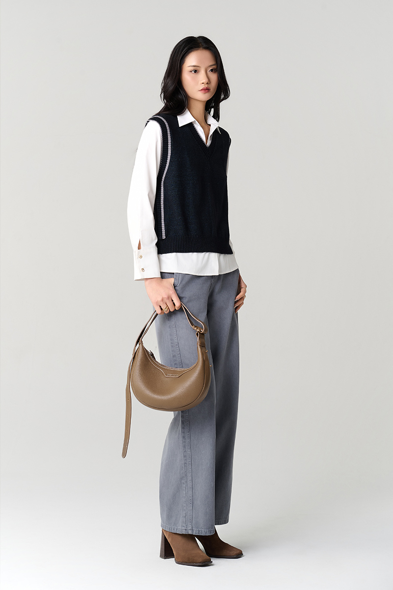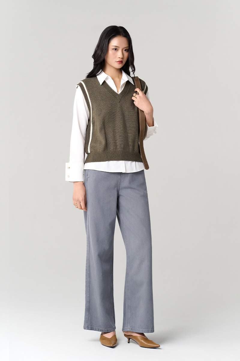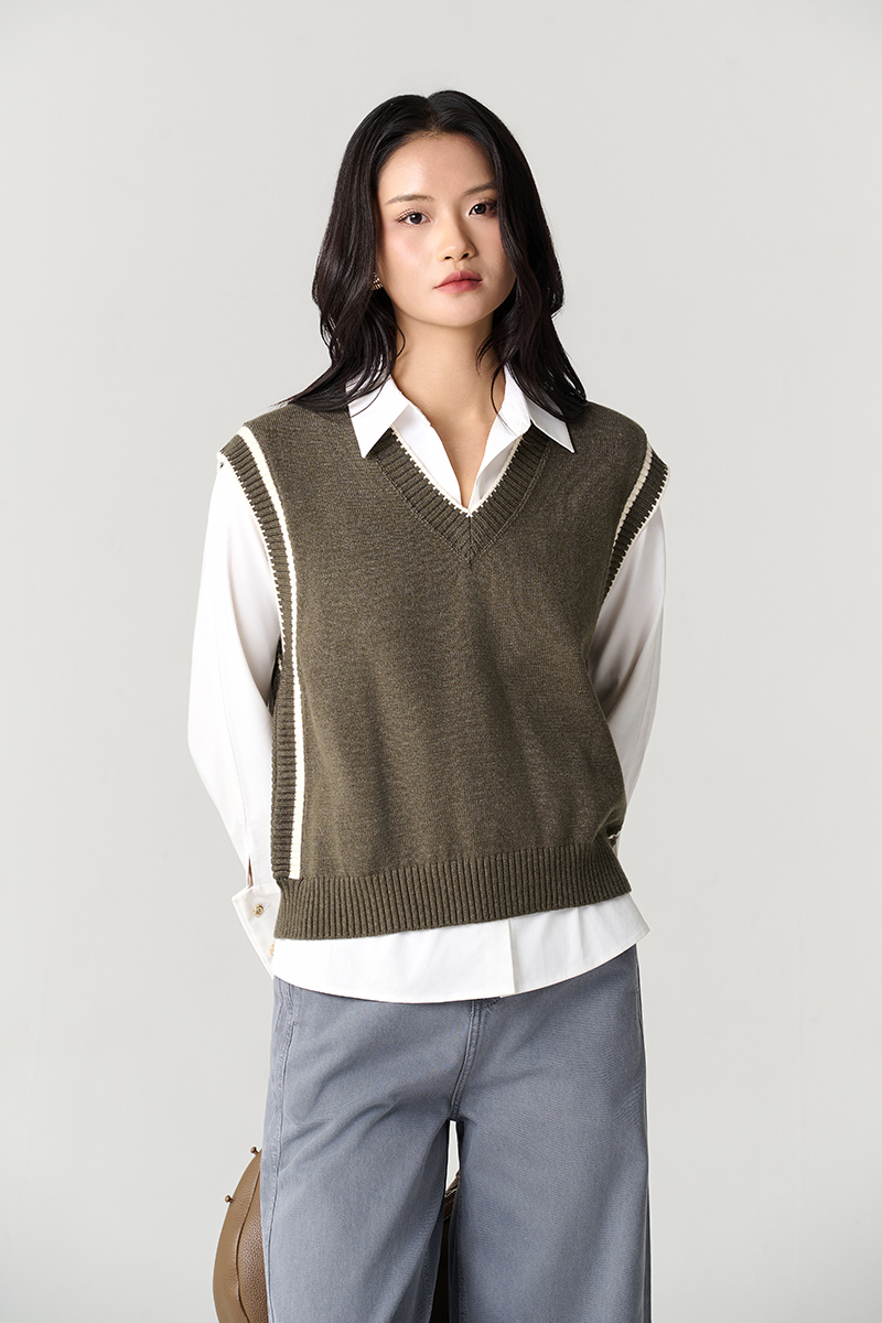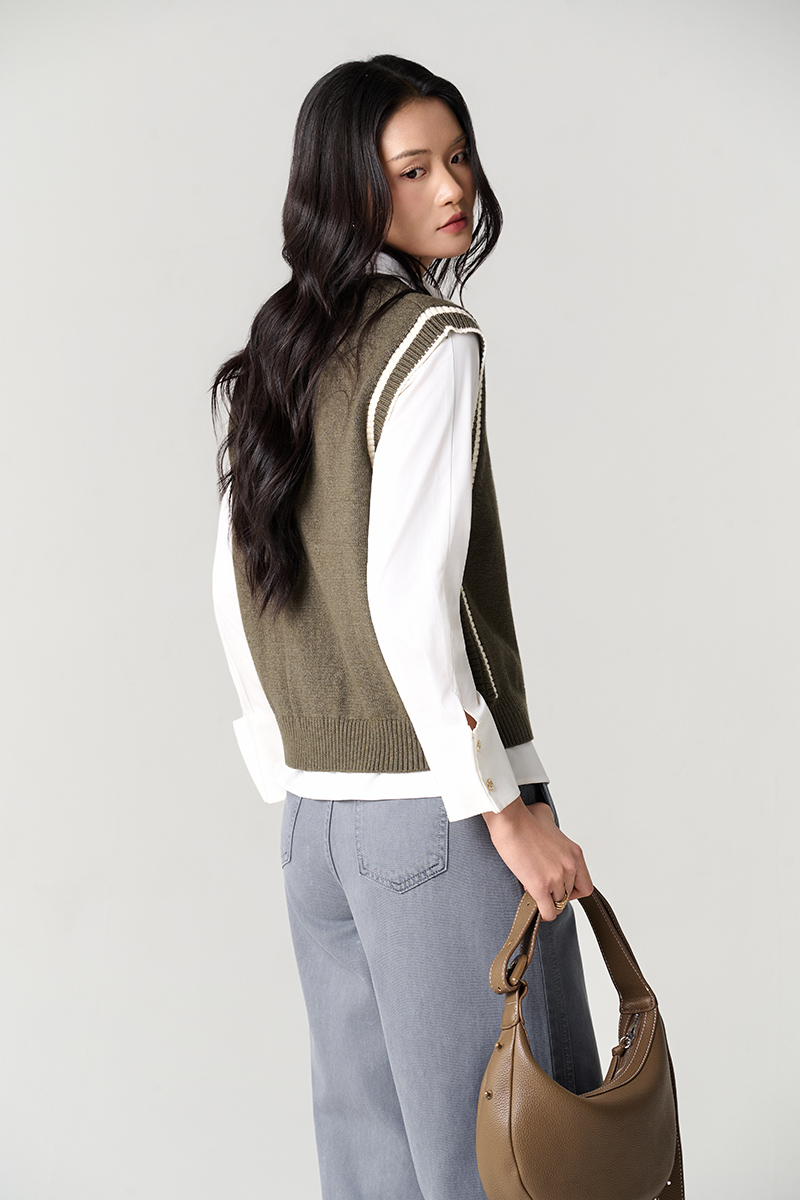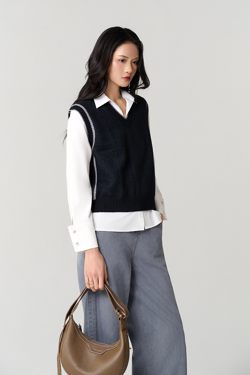 Áo Len gile cổ tim bo tay dệt liền thân