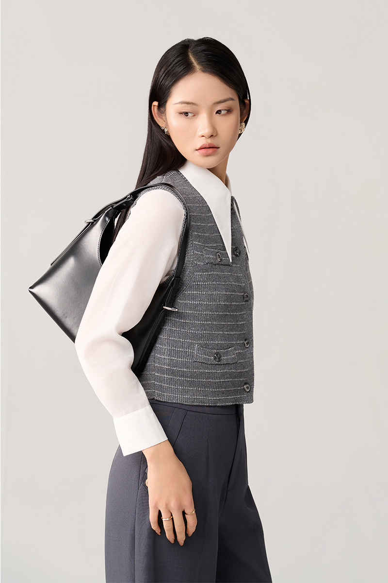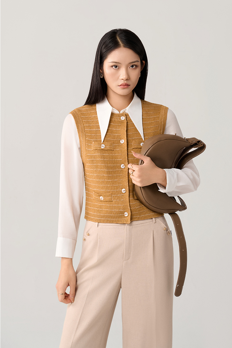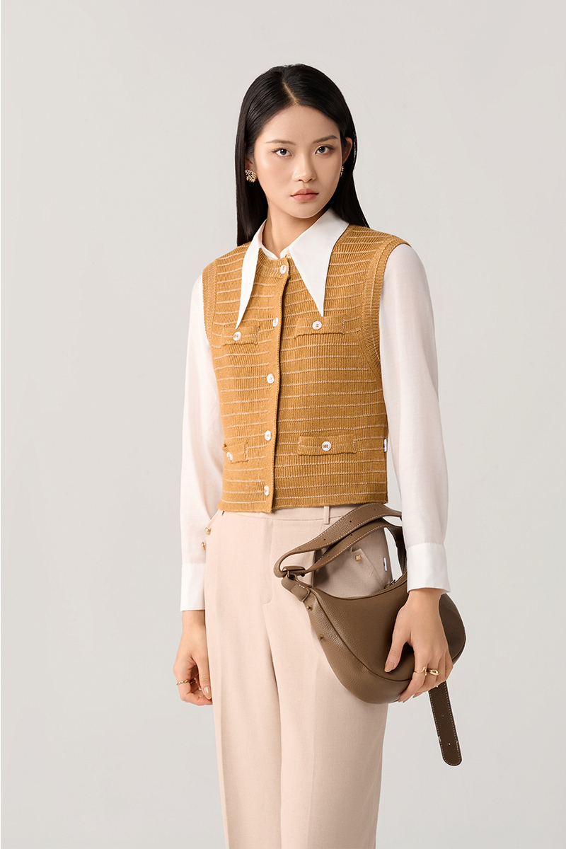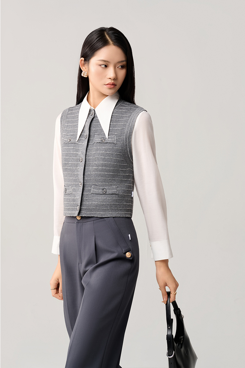 Áo Len gile dệt kẻ ngang cơi giả túi