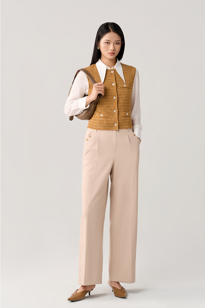 Chân váy suông can giả túi đính cúc - M, Hồng