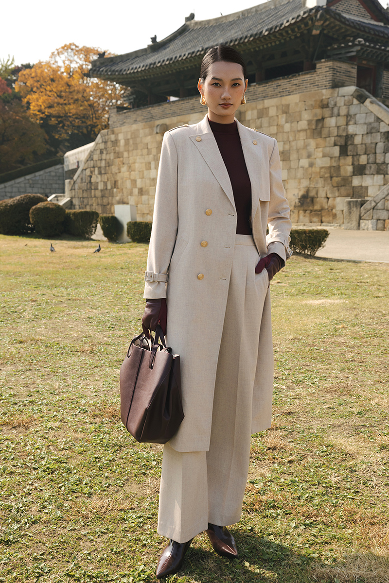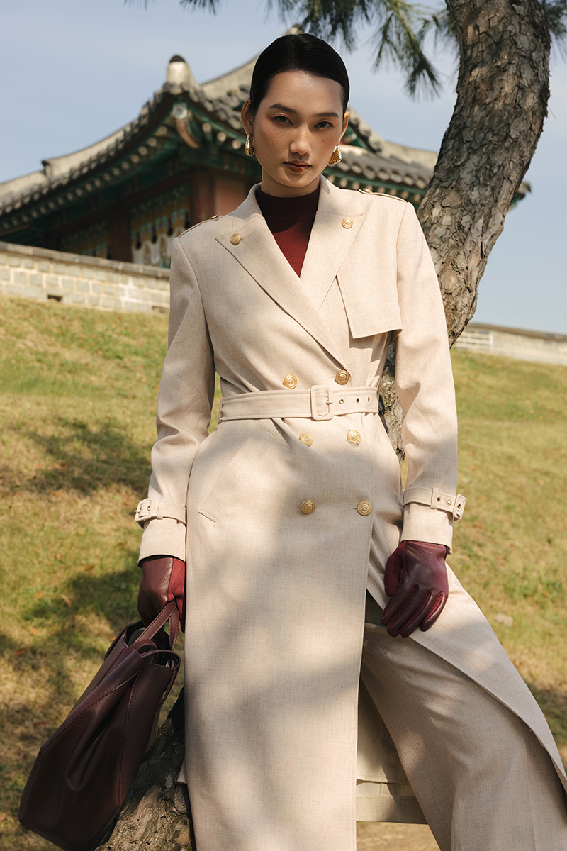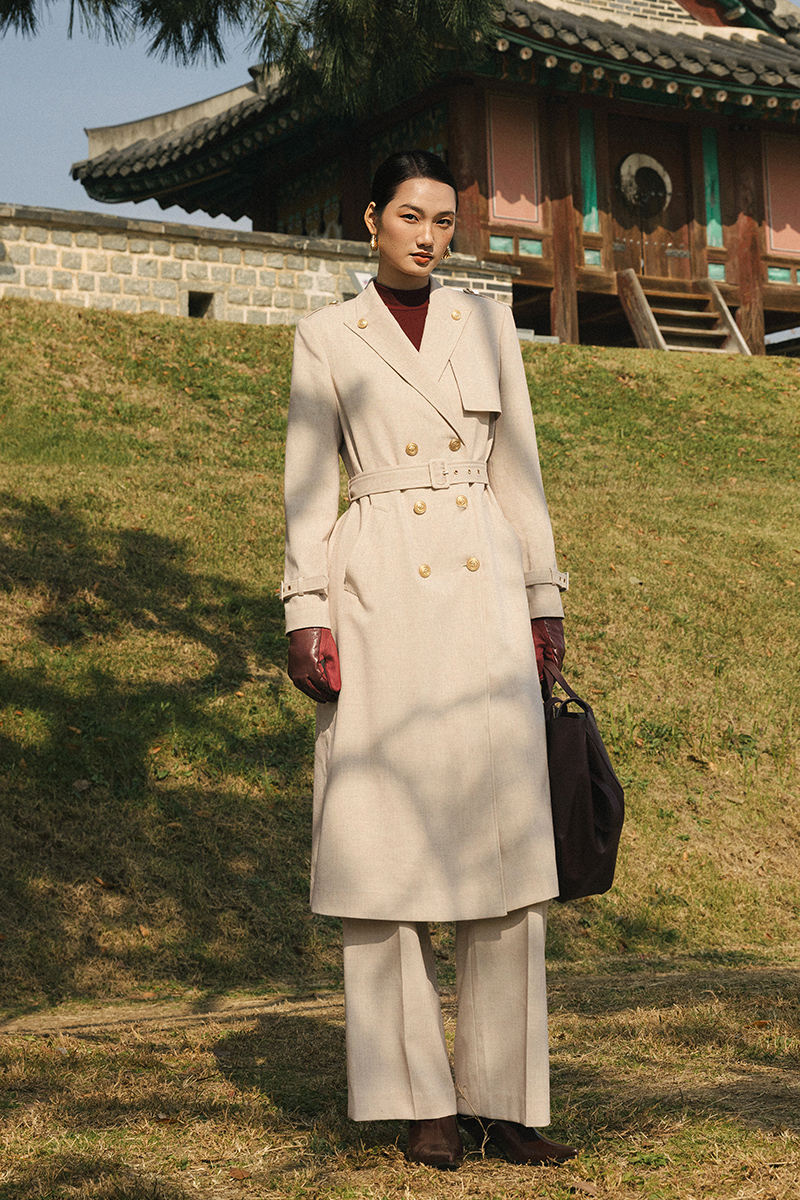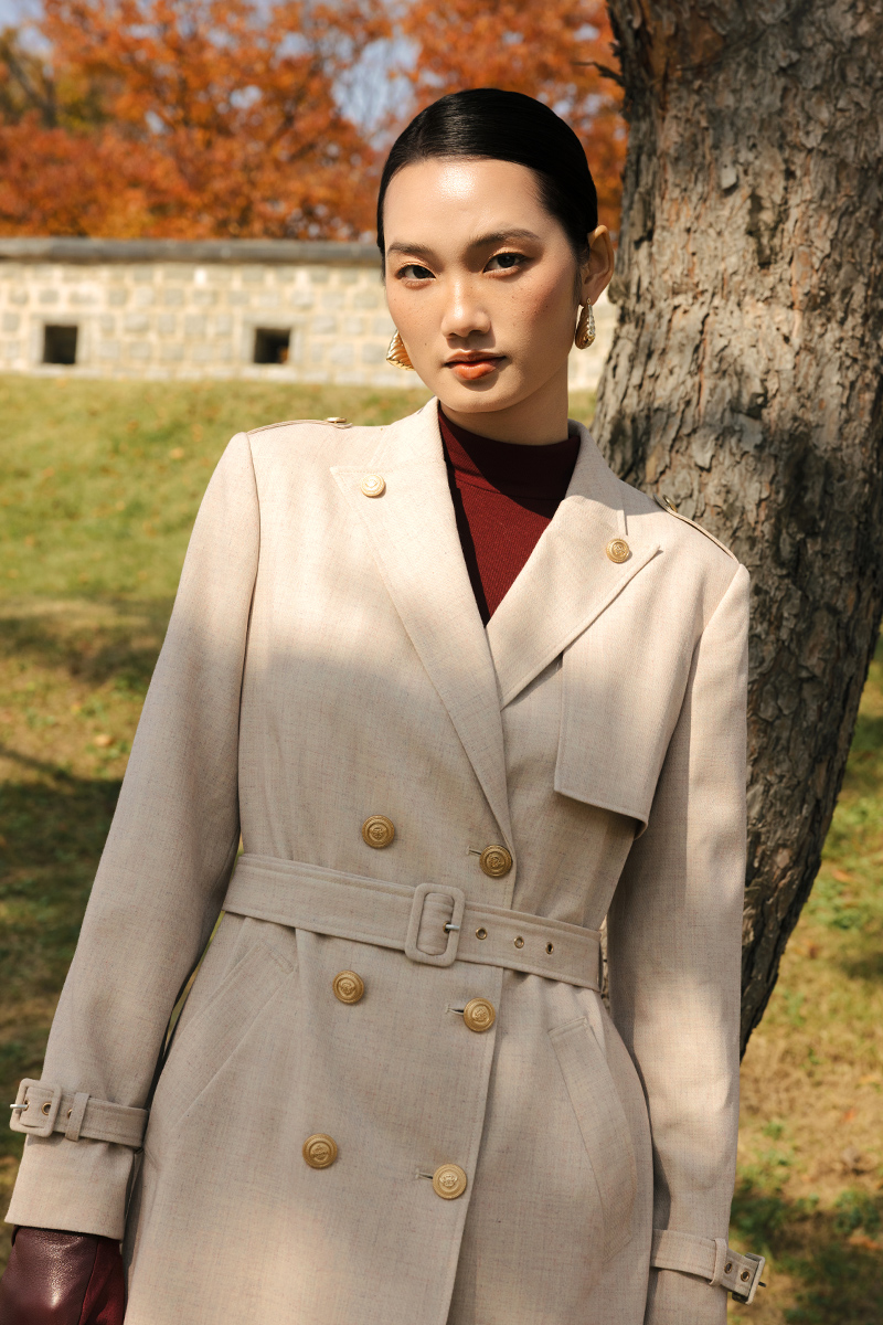 Áo măng tô cổ cách điệu đính cúc