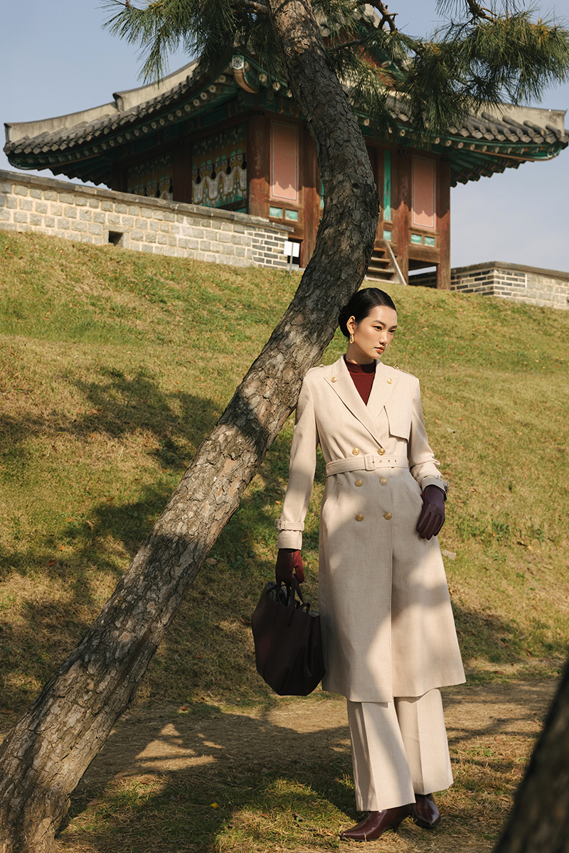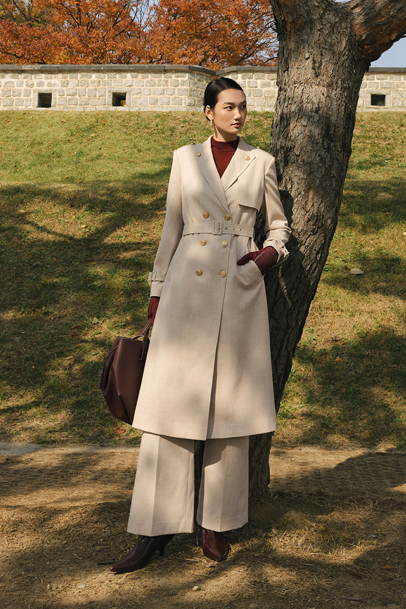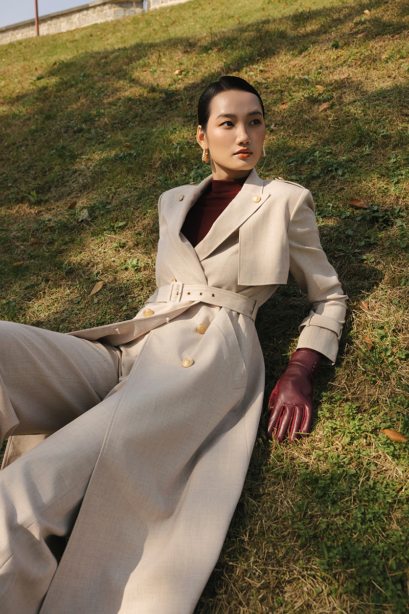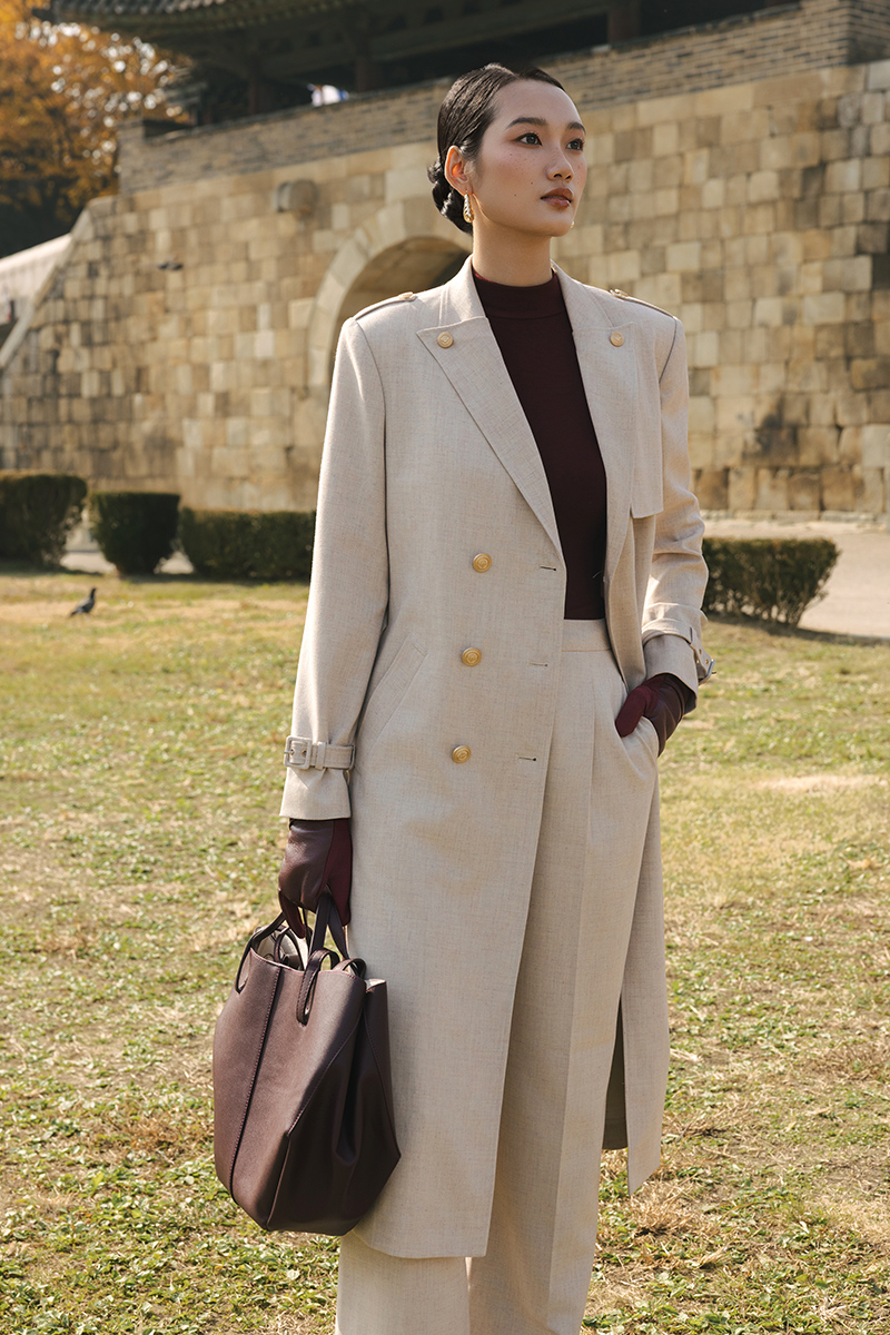 Áo măng tô cổ cách điệu đính cúc