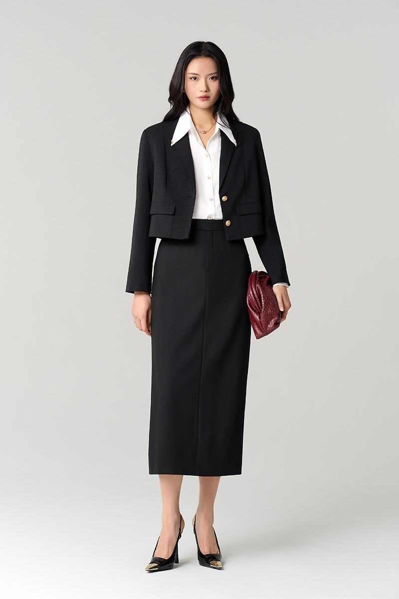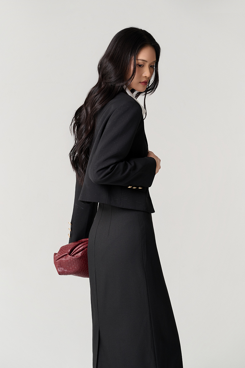 Chân váy dài quai nhê cạp kẹp nắp túi