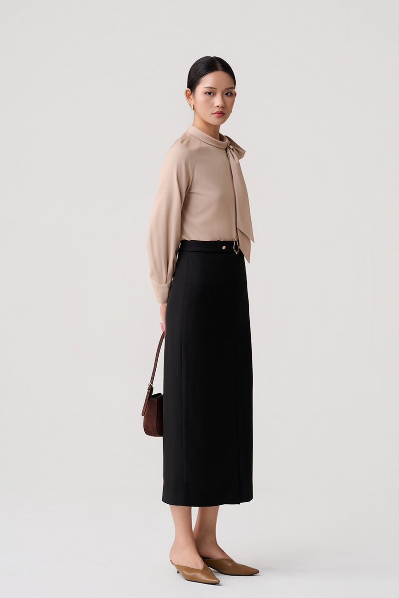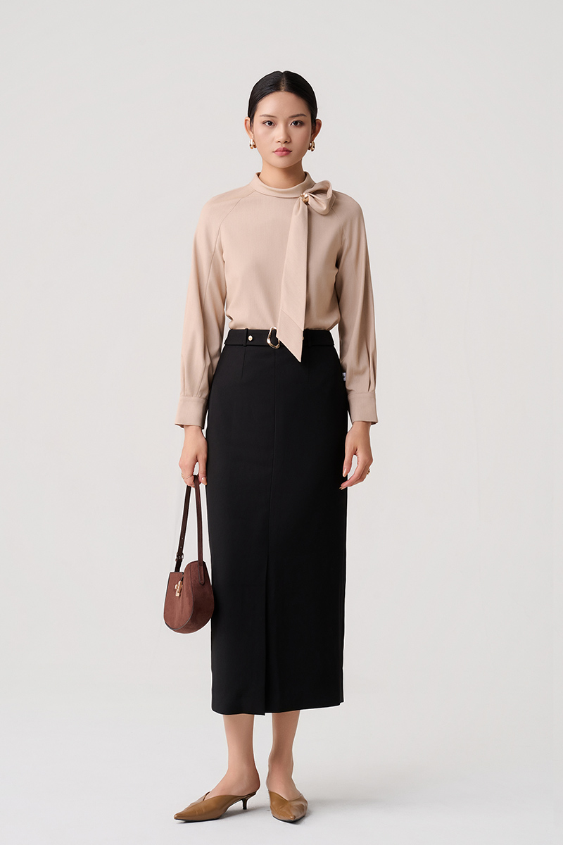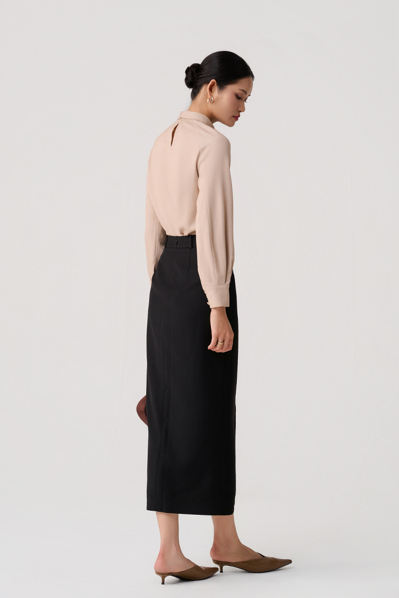 Đầm A DT nhúm bèo cổ phối - S, Đen