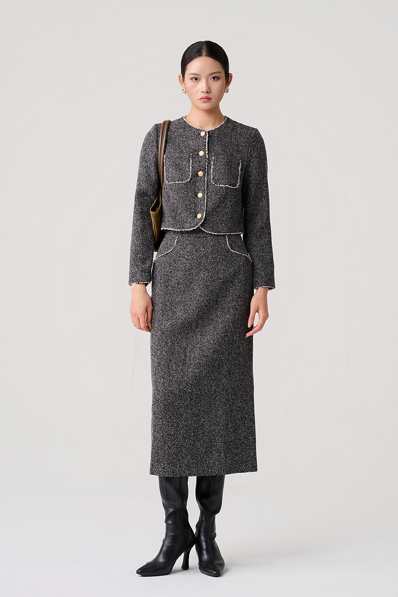 Chân váy tweed can hông kẹp tua TT