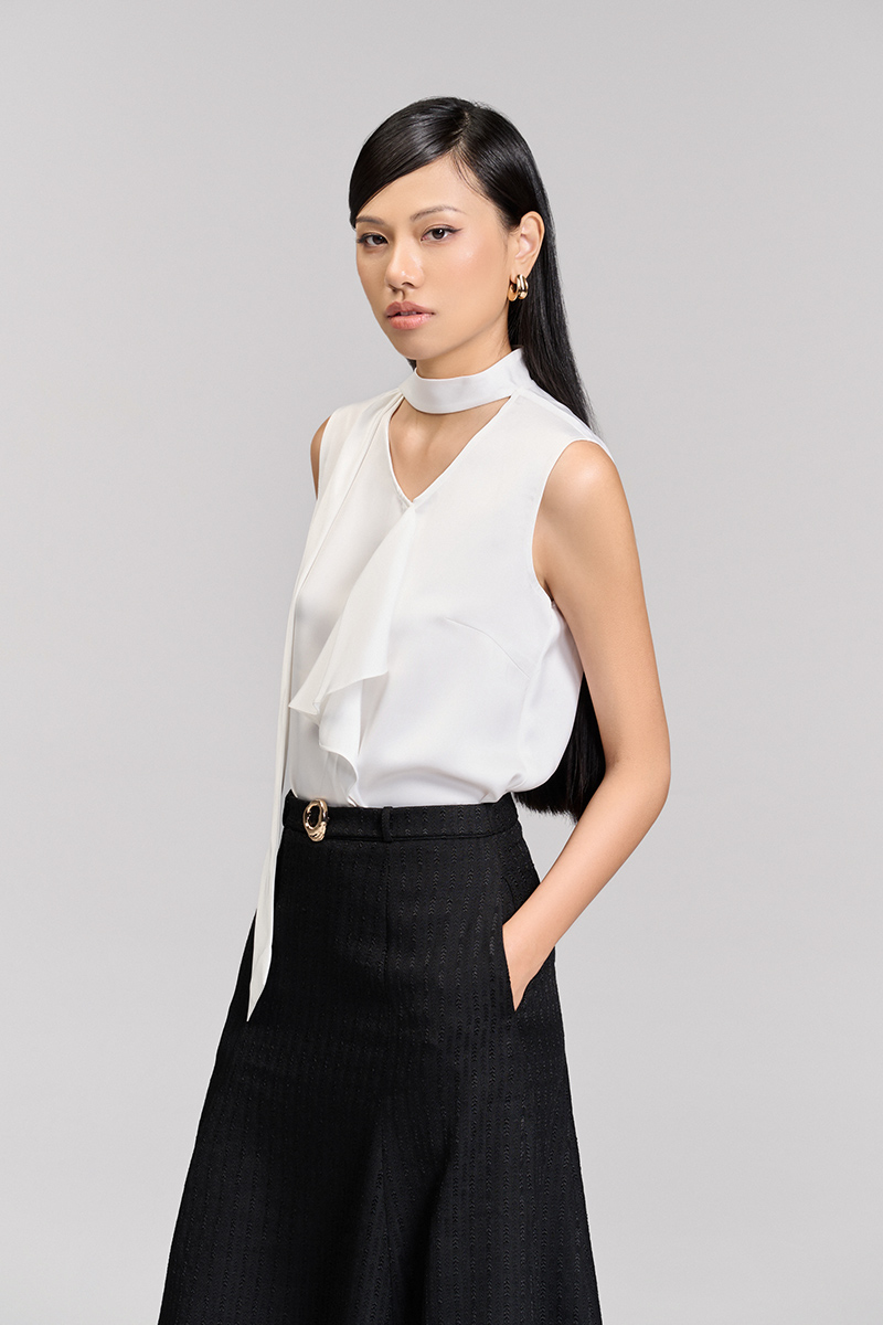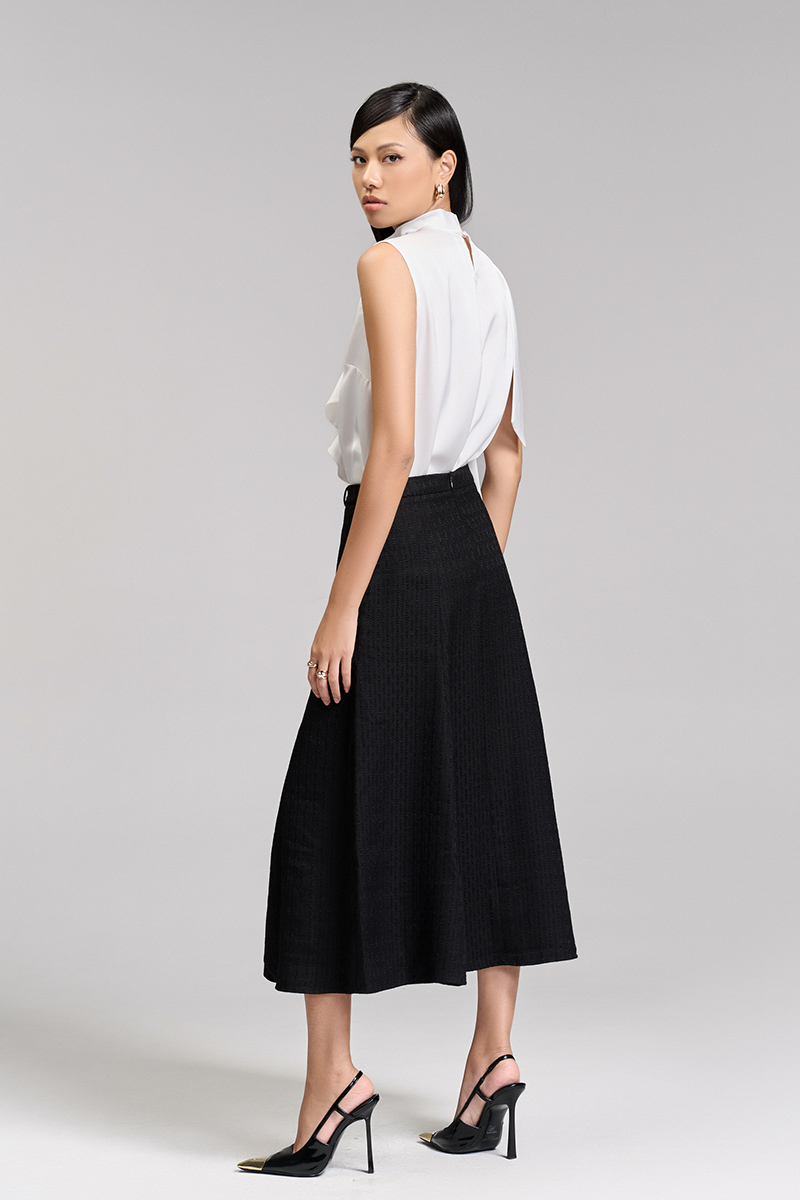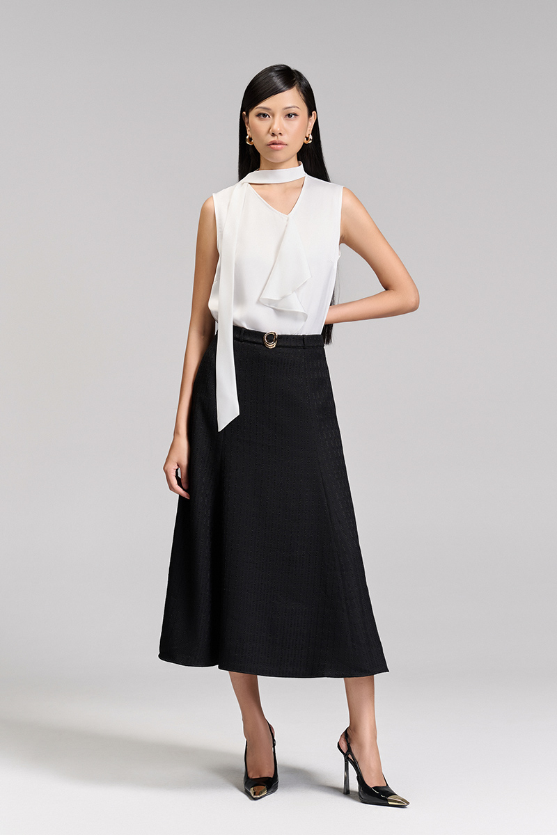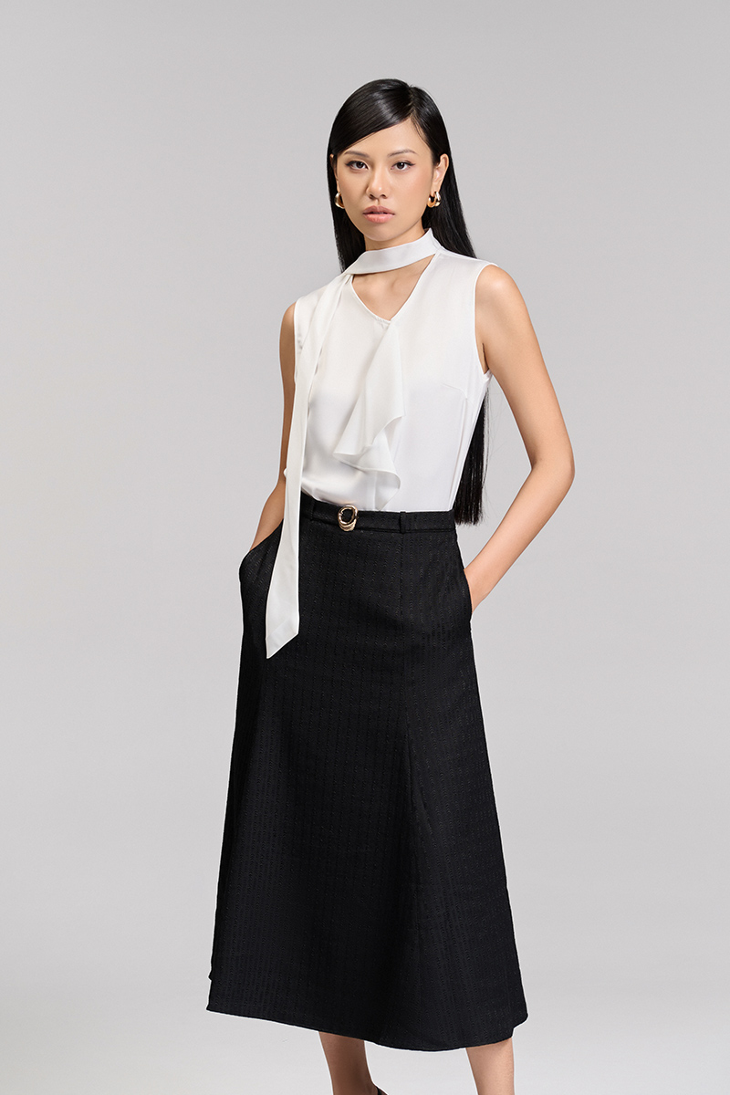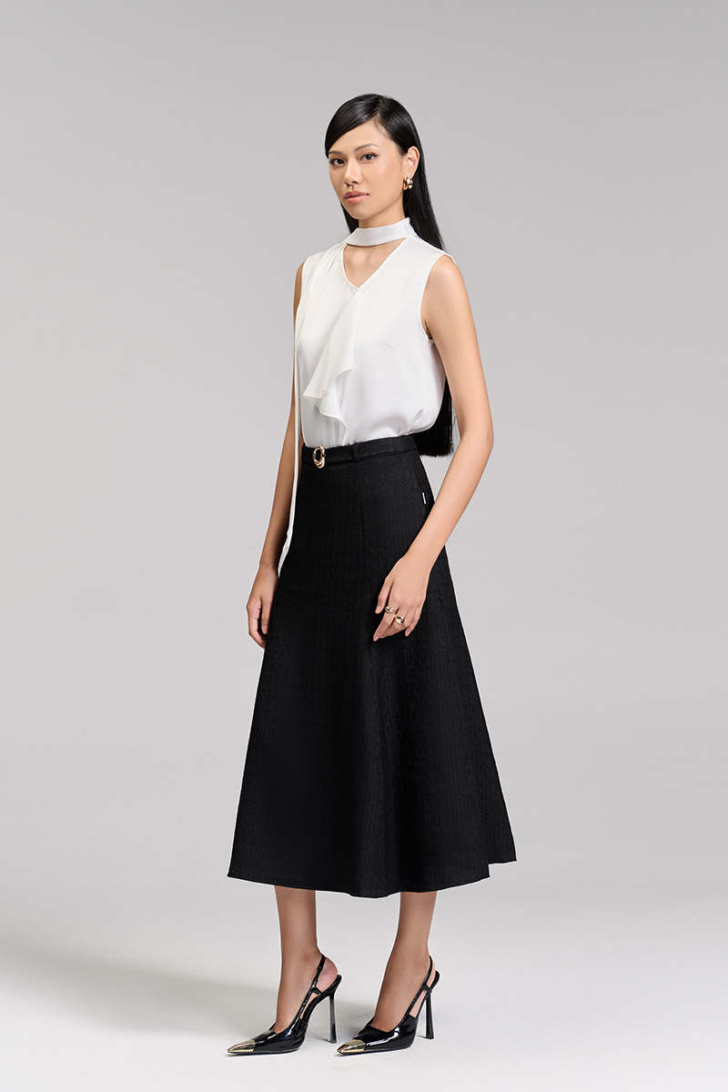 Chân váy tweed xoè đai kẹp sườn cài tag