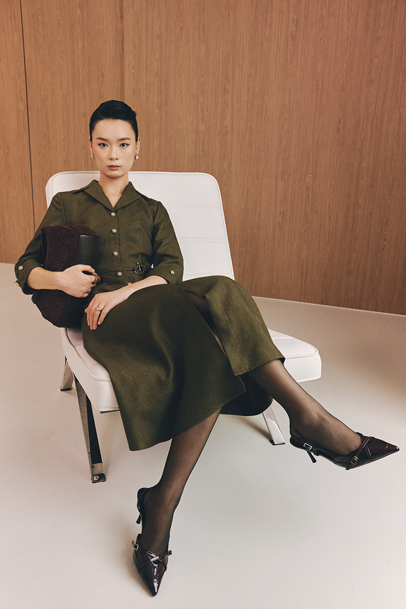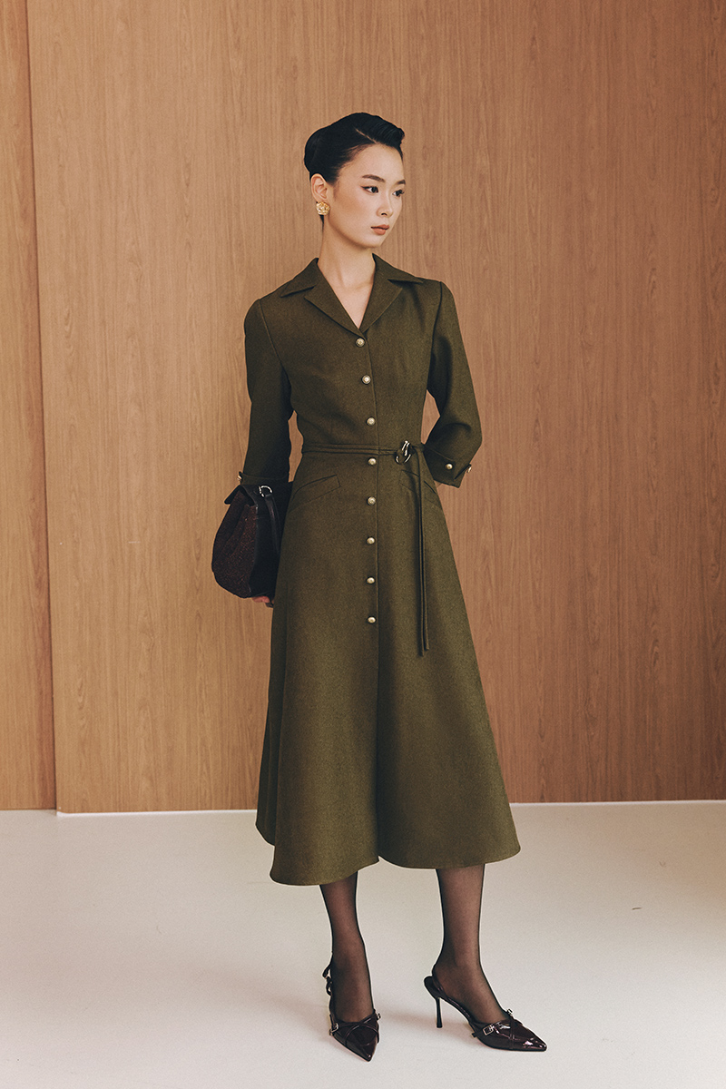 Đầm xoè lơ vê tay đai eo dây đôi