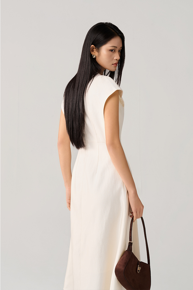 Vải không nhăn, giữ form đẹp suốt ngày, dáng đầm thanh lịch, hợp đi làm hay dạo phố.