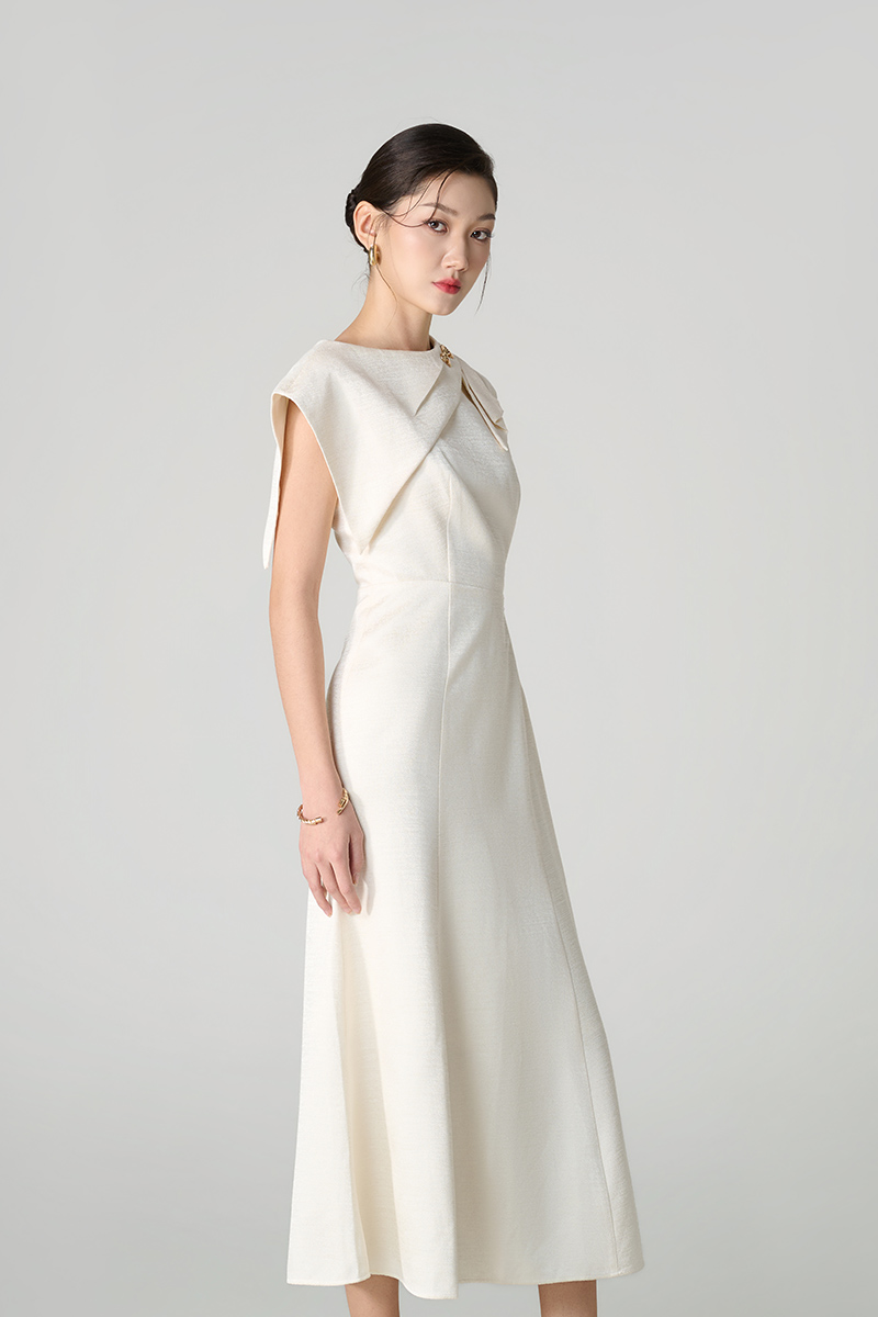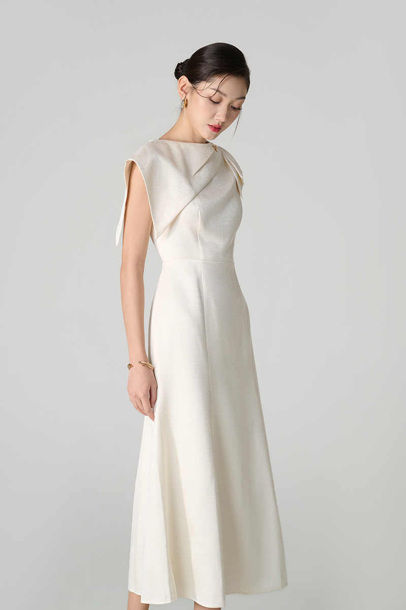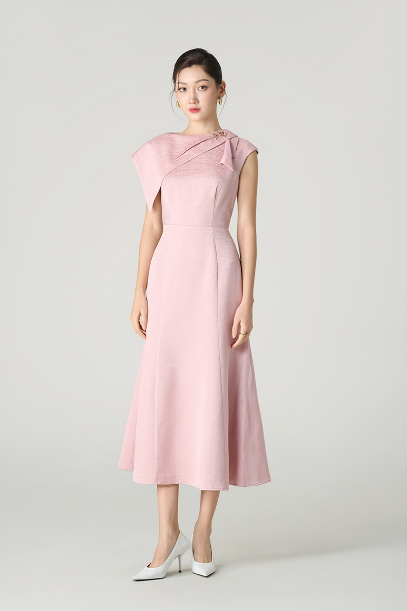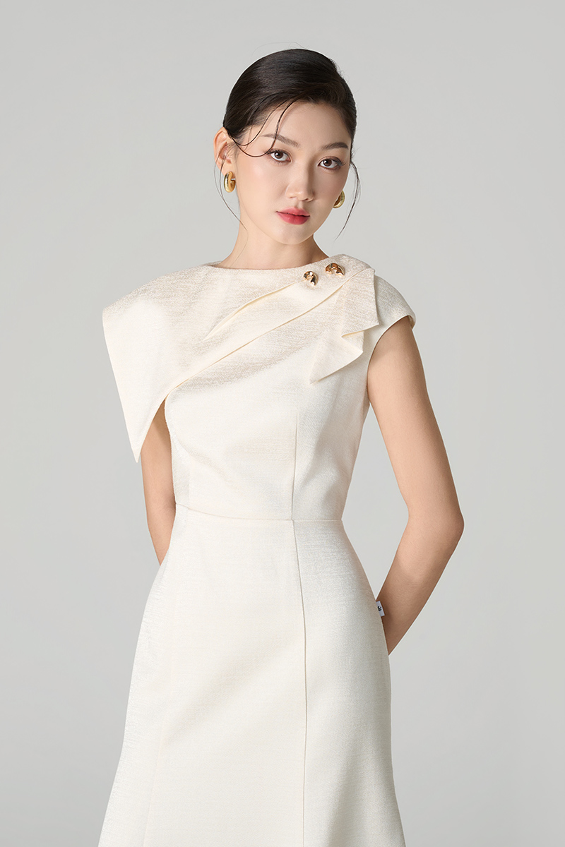 Đầm xoè tùng đuôi cá vạt vai bồng lệch