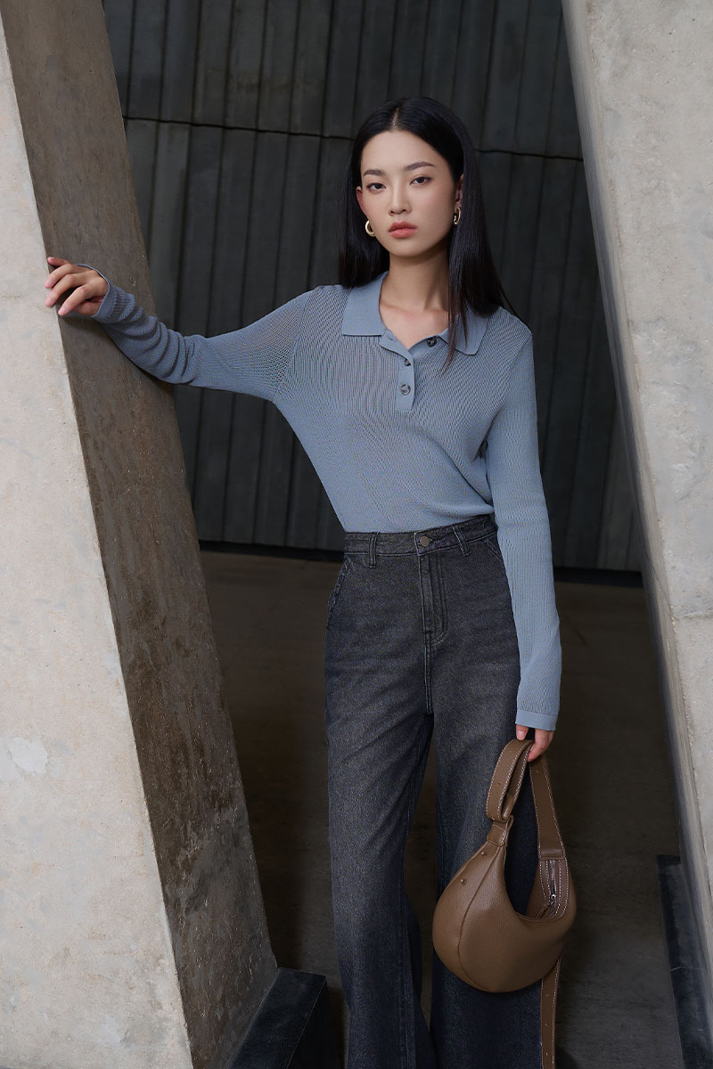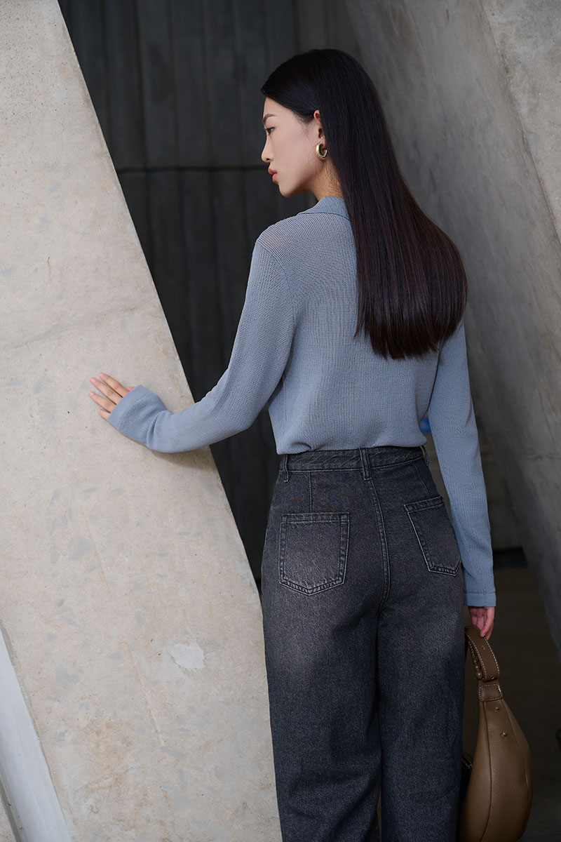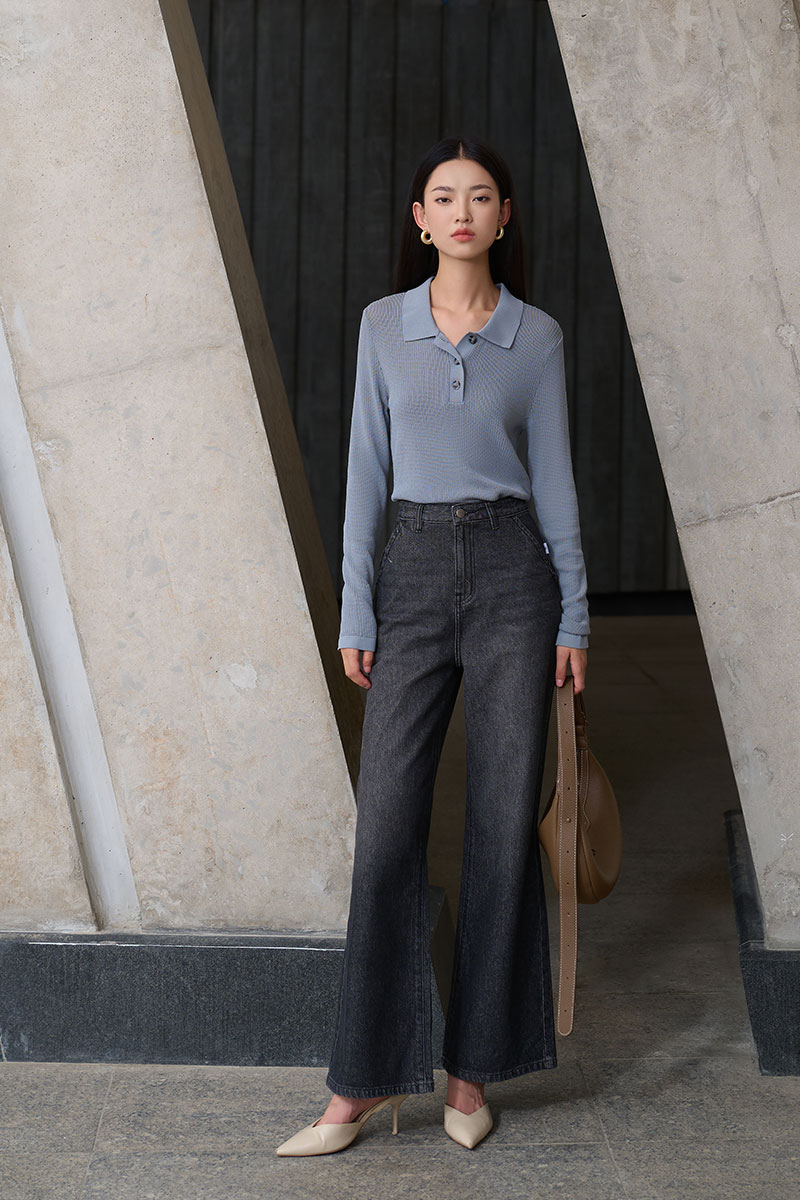 Quần jean suông loe túi vát chéo