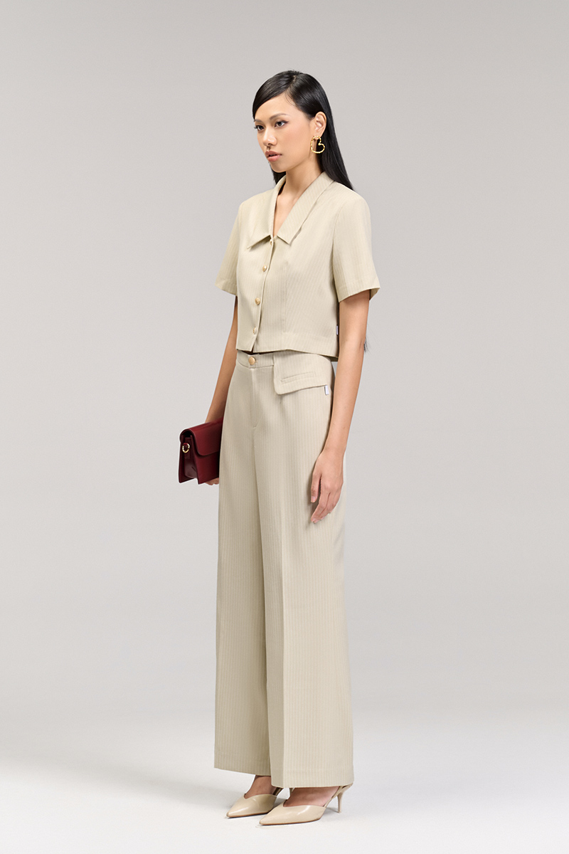 Quần loe kẻ bong hông bổ cơi 1 bên
