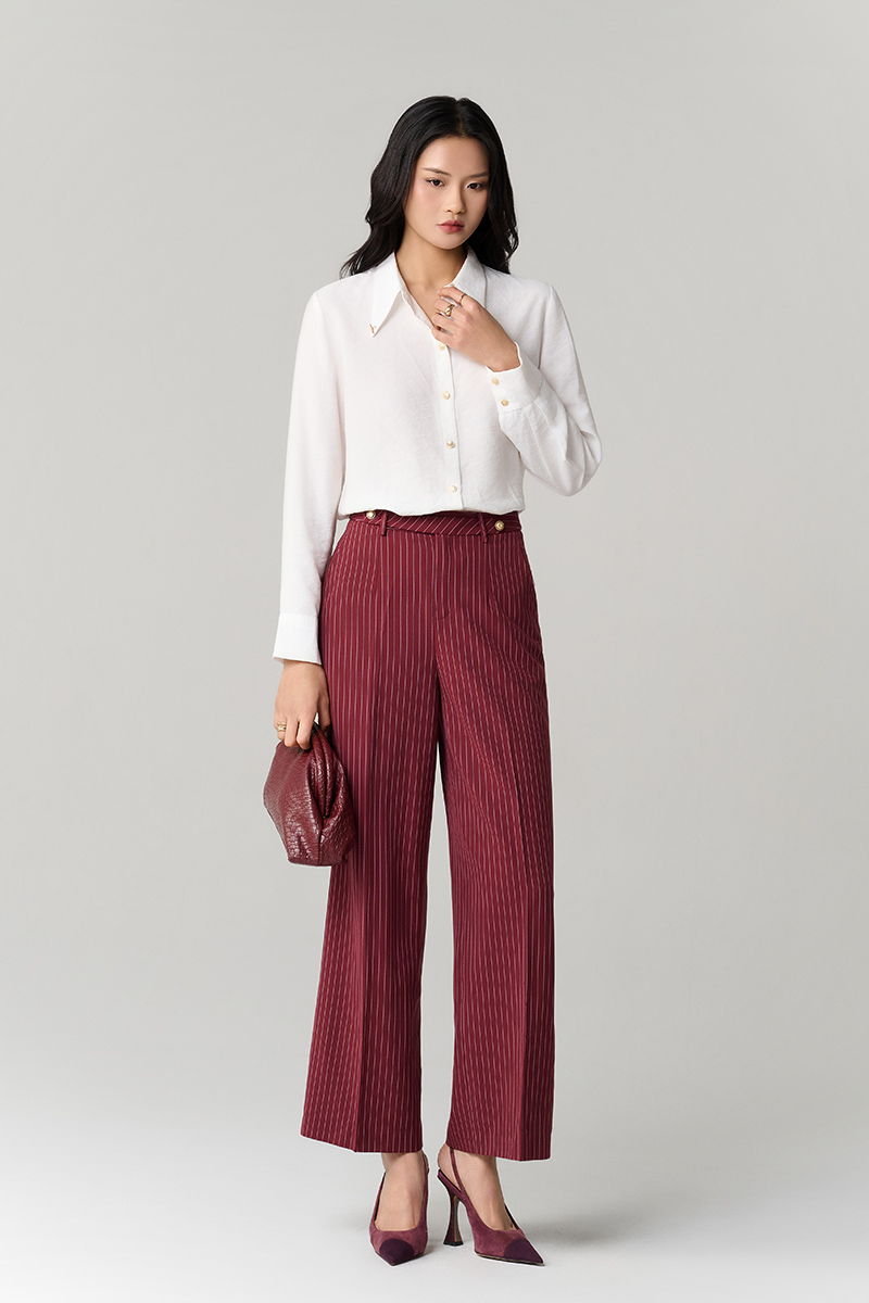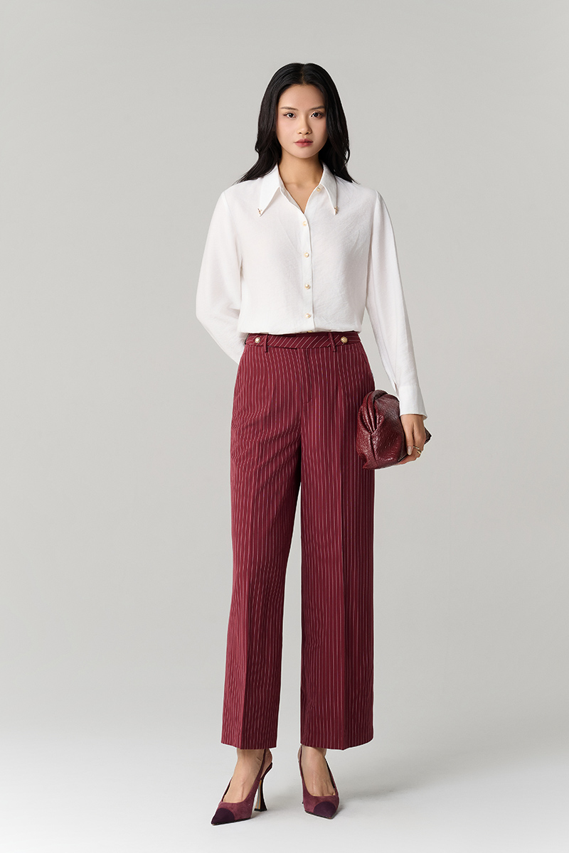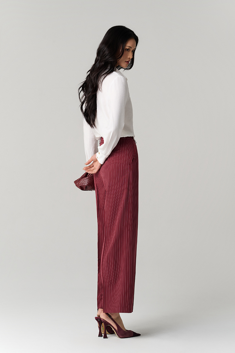 Quần suông kẻ quai nhê cạp cài cúc