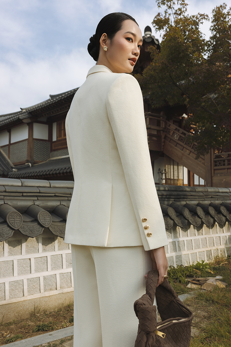 Quần suông tweed bổ cơi kẹp cá