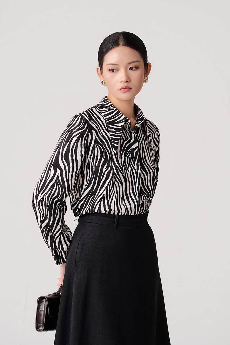Sơ mi DT lá cổ nhọn hoạ tiết vân