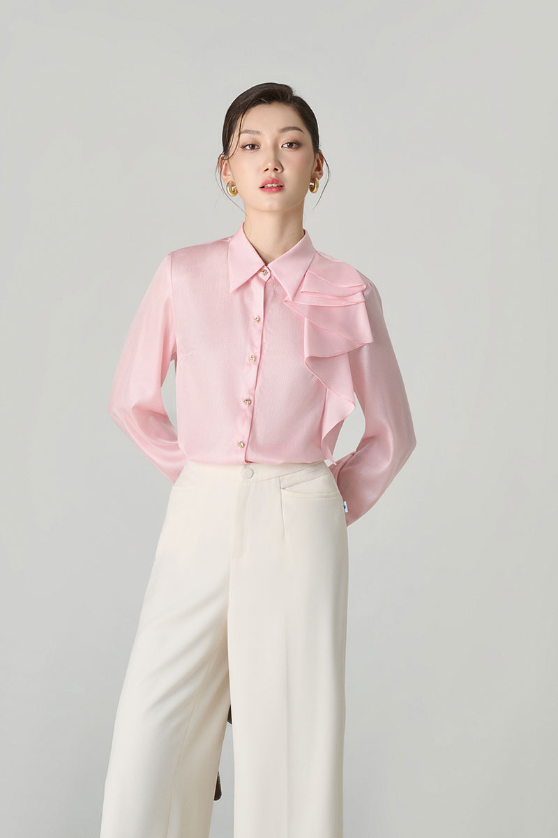 Sơ mi DT cổ kẹp bèo măng sét bấu mí