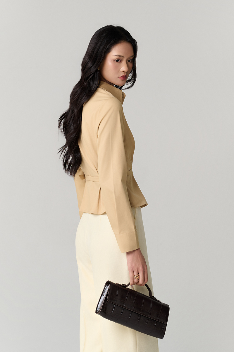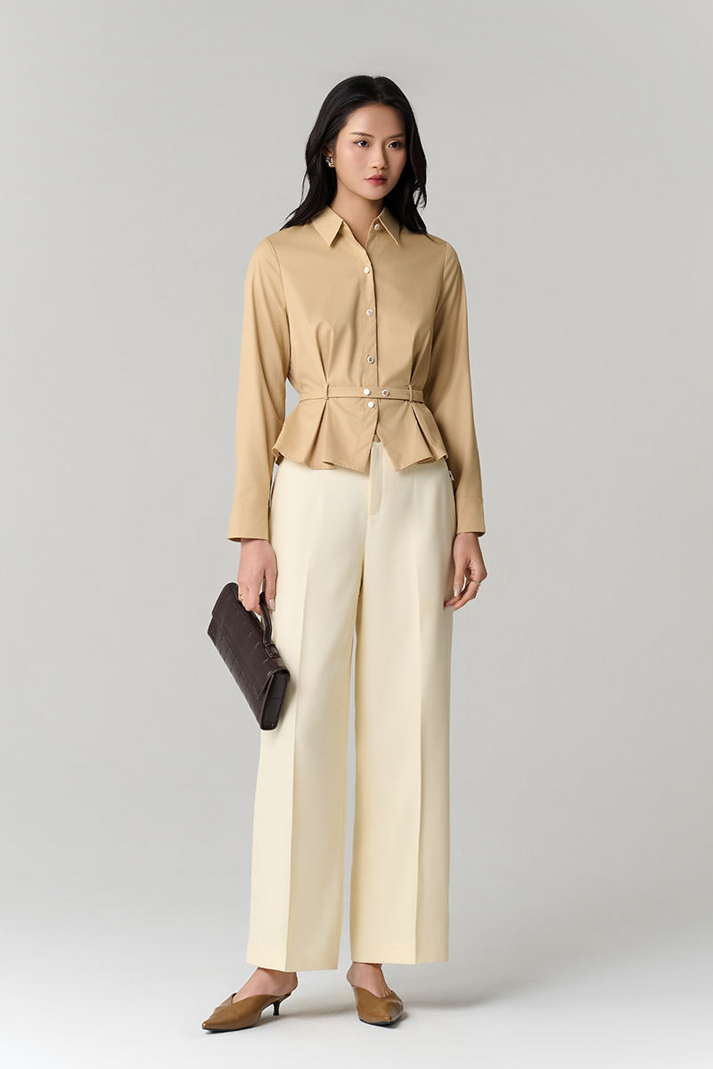 Sơ mi DT xếp ly eo, gấu xoè kèm đai